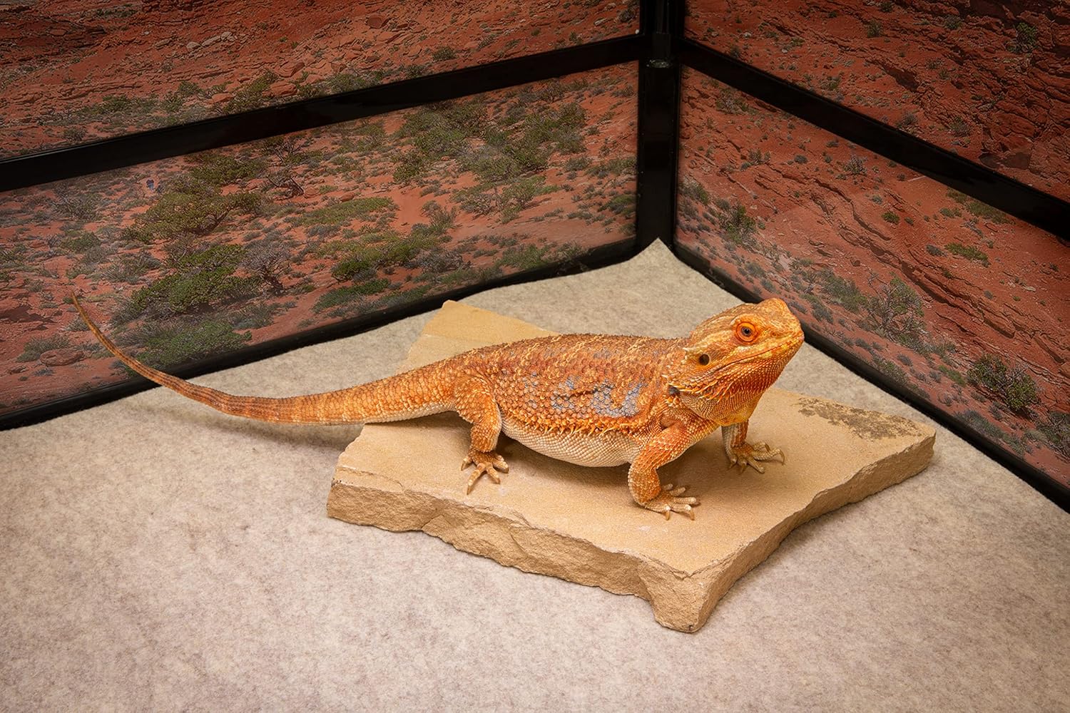 These Natural Habitat Rocks we have found to be an excellent choice for basking rocks, as well as for building habitat rock formations for various reptiles, amphibians and turtles. As a basking rock, there’s enough natural porosity that although the rock gets warm accumulating heat, it doesn’t get too hot; as glazed ceramic tile or slate would. As an aesthetic element in the habitat, they offer a truly natural accessory piece which is also manageable to keep clean. Natural rock also provides a means for self-grooming of reptile claws. These are real rocks (not cast resin or coated Styrofoam) and each one is unique. Grouped by general size (medium or large) and color (Blue Green, Deep Maroon, Painted Desert, Uluru Red and Watarrka Rose). Hand selected to typically have at least one side basically flat. The medium sizes about 6” x 8” and large sizes about 7-1/4” x 12-5/8”. We scrub the Natural Habitat Rocks that we use periodically in hot water, with a brush reserved for that purpose, followed by chlorhexidine. Carolina Custom Cages is a division of Carolina Designer Dragons, Inc.