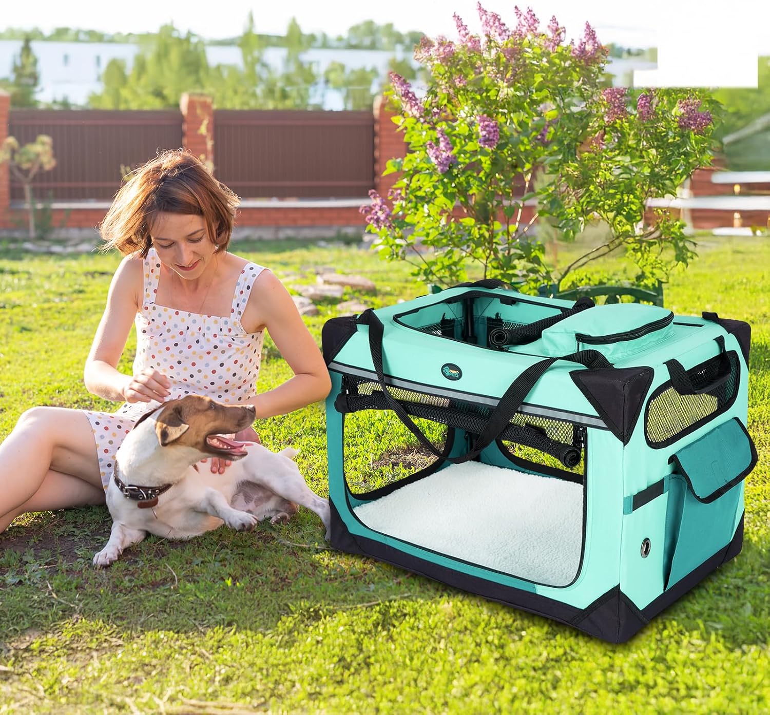 Folding and Portable: This portable large cat carrier is easy to set up and take down, making it convenient for travel, camping, and outdoor adventures. The lightweight design and foldable construction make it easy to carry and store, even in small spaces.