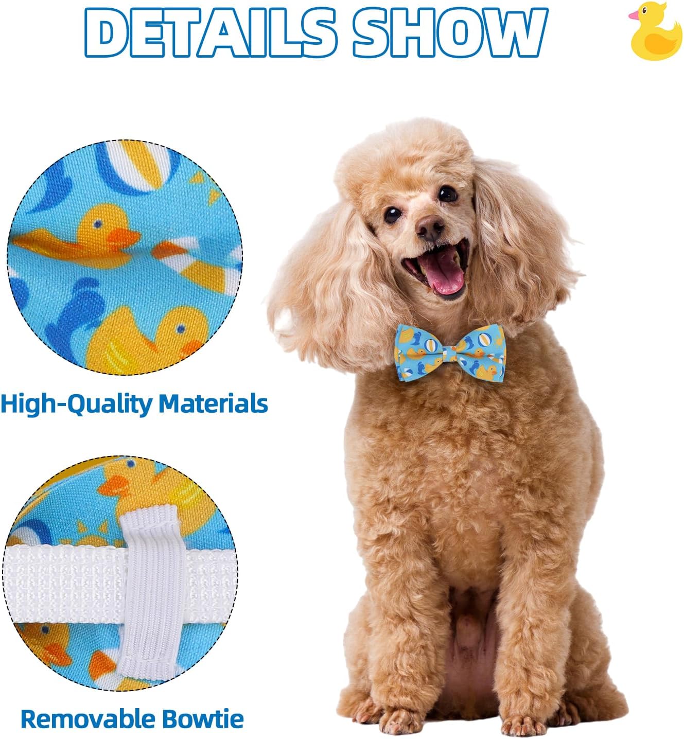 PREMIUM MATERIAL: These bow ties are made with durable and sturdy polyester material, which is resistant to bite and not easy to be torn broken. The elastic rope on the bow is made of a very strong and durable material, which can be pulled very long without breaking. You don’t have to worry about the bow falling on your dog’s collar