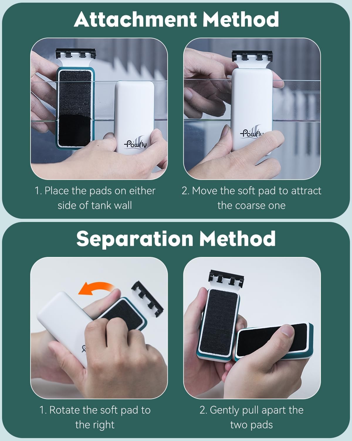Double-Sided Magnet Cleaning Tool: The coarse pad effectively removes tough stains or buildup in the tank without scratching the glass. Reliable cleaning tool for keeping your tank crystal clear