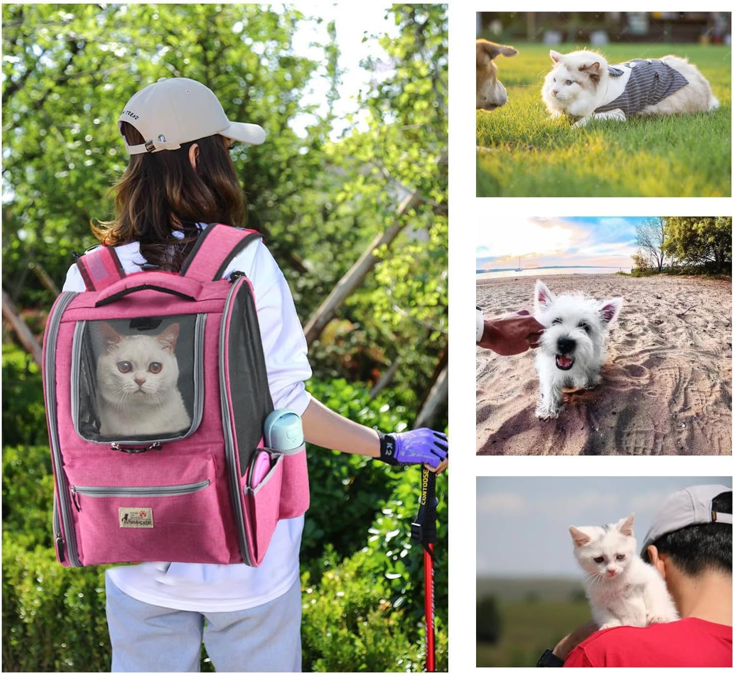 Pet Carrier Backpack for Small Cats Dogs Puppies, with Breathable mesh, Airline Approved, Foldable Carrier for Hiking, Camping, Biking, Outdoor Travel, Pet Upto 18lbs