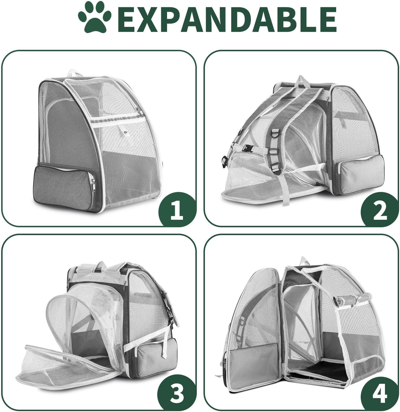 Expandable Design: The backpack features an expandable structure, allowing you to adjust the size to suit your pet’s needs and provide ample space for movement.