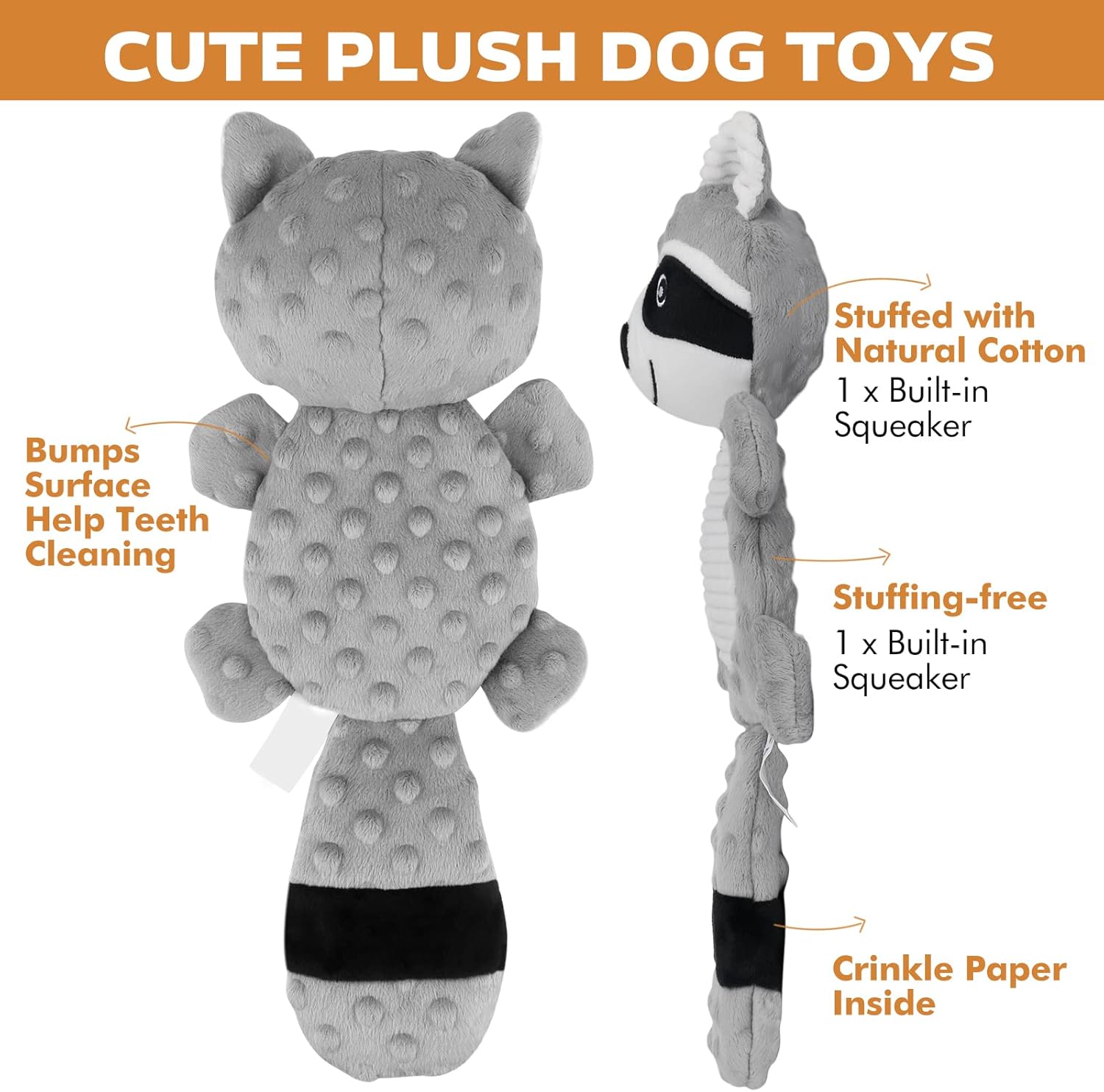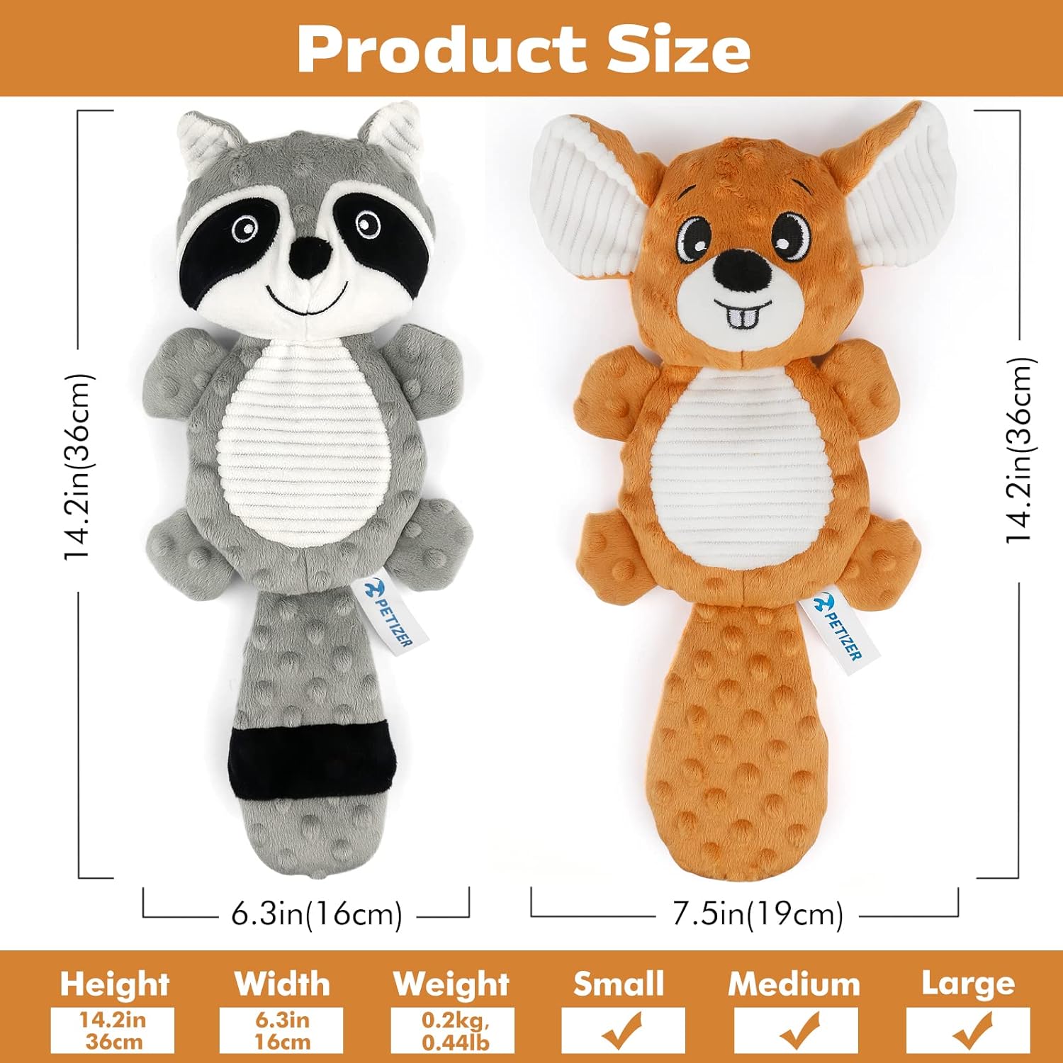 petizer Plush Squeaky Dog Toys, Stuffed and Crinkle Dog Chew Toys, Interactive Toys for Puppies, Small, Medium and Large Dogs, Cute Squirrel and Raccoon, 2 Pack