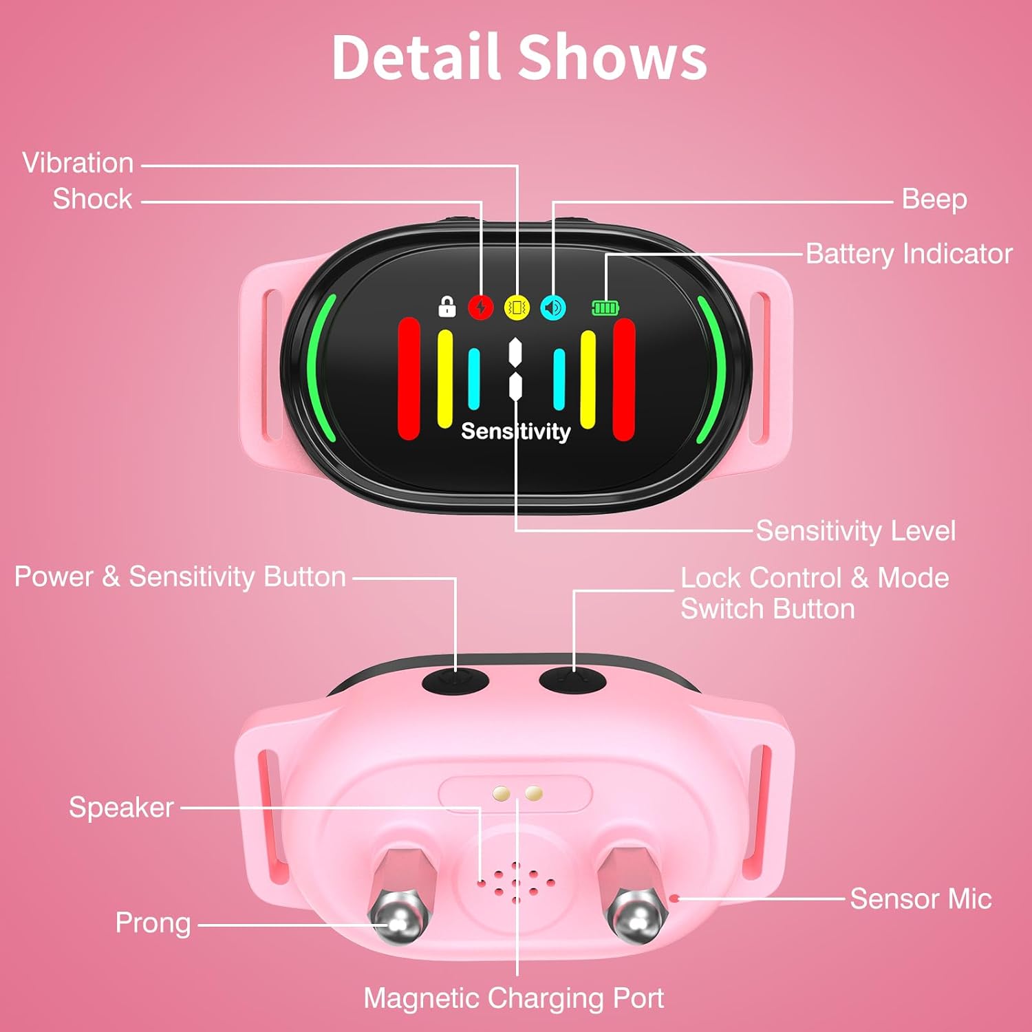 【 Protected Mode 】 Anti bark collar for dogs use 5 levels of progressive training. When the automatic bark collar triggers 5 times in a row, it will enter a 30-second standby protection mode, which is more humane.