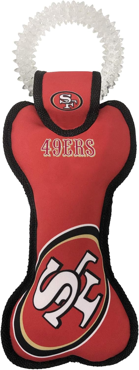 Pets First NFL SAN Francisco 49ERS Dental Dog TUG Toy with Squeaker. Tough PET Toy for Healthy Fun, Teething & Cleaning Pet’s Teeth & Gum.