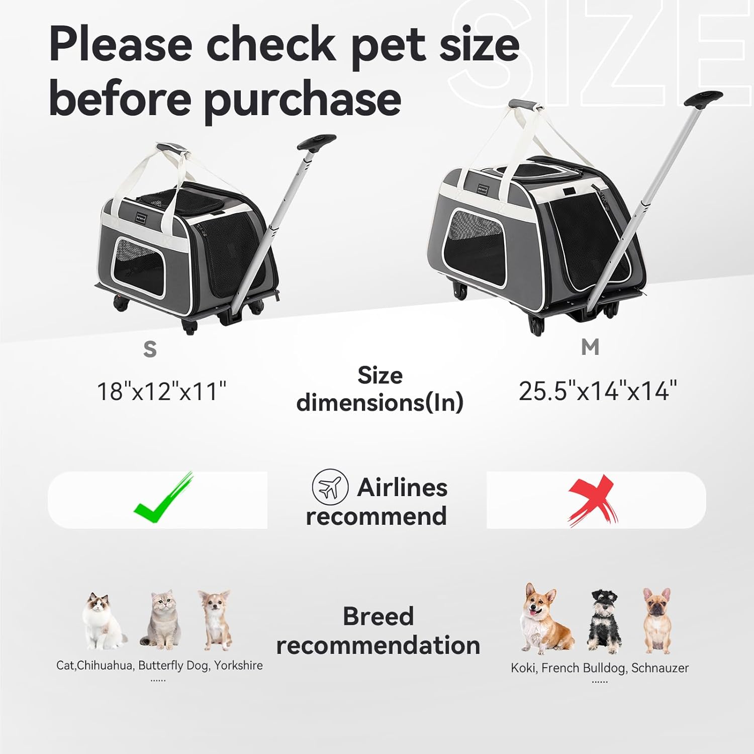 𝑵𝒐𝒕𝒆: 𝒂𝒊𝒓𝒍𝒊𝒏𝒆 𝒂𝒑𝒑𝒓𝒐𝒗𝒆𝒅 Product Size:18″L x 12″W x 11″H (Wheel height not included),Please measure the size and weight of your pet before purchasing