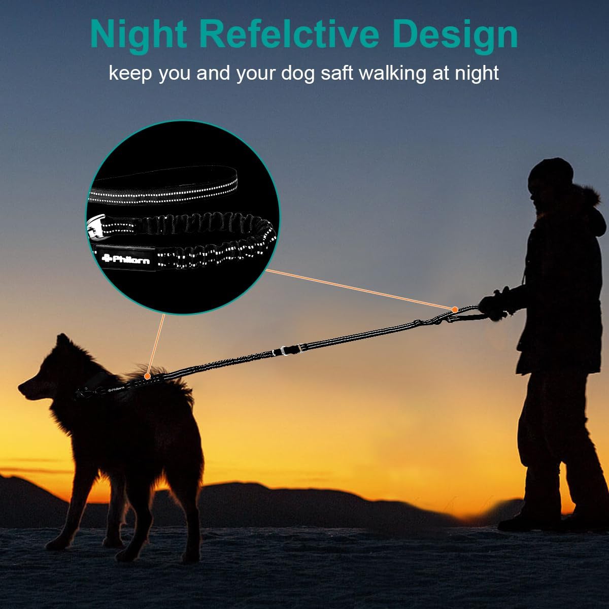 Philorn Bungee Dog Leash Heavy Duty 6-7FT Adjustable Length No Pull with 2 Padded Traffic Handles, Reflective Threads, Car Seatbelt for Large Medium Dogs (Black)