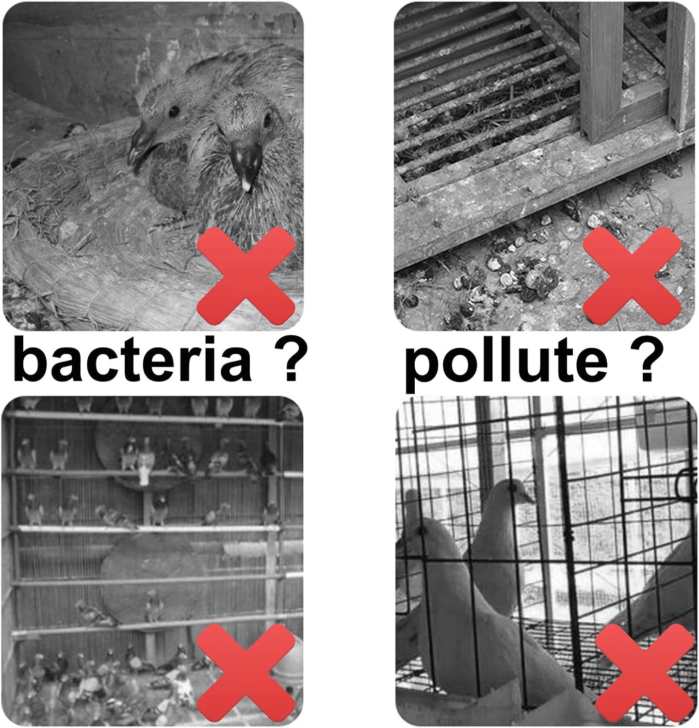 During the breeding season, it can be used as a breeding cage for pigeons. Closing the cage door allows mother pigeons to hatch young pigeons with peace of mind. When it is not the breeding season, the door of the cage can be pushed up and hidden at the top of the cage, so that it becomes a separate space for the pigeons to rest.