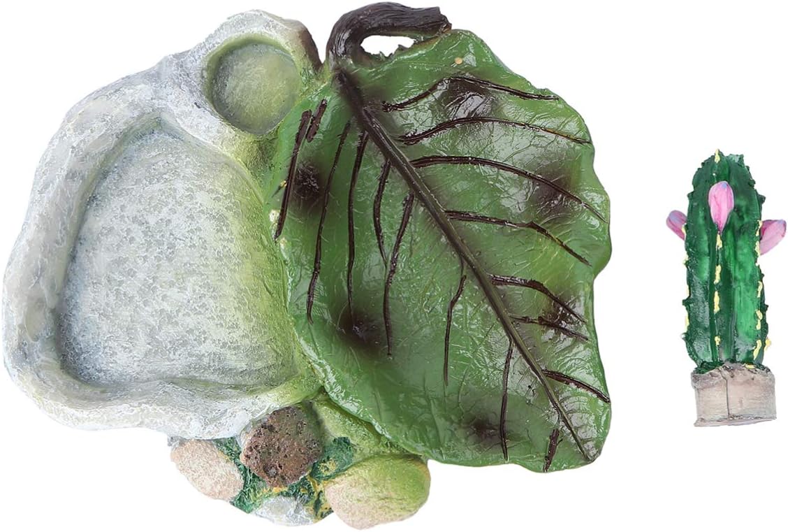 POPETPOP Reptile Water Dish : Cactus Shape Reptile Water Bowl Resin Reptile Feeding Dish Reptile Food Dish for Bearded Dragon Lizard Spider