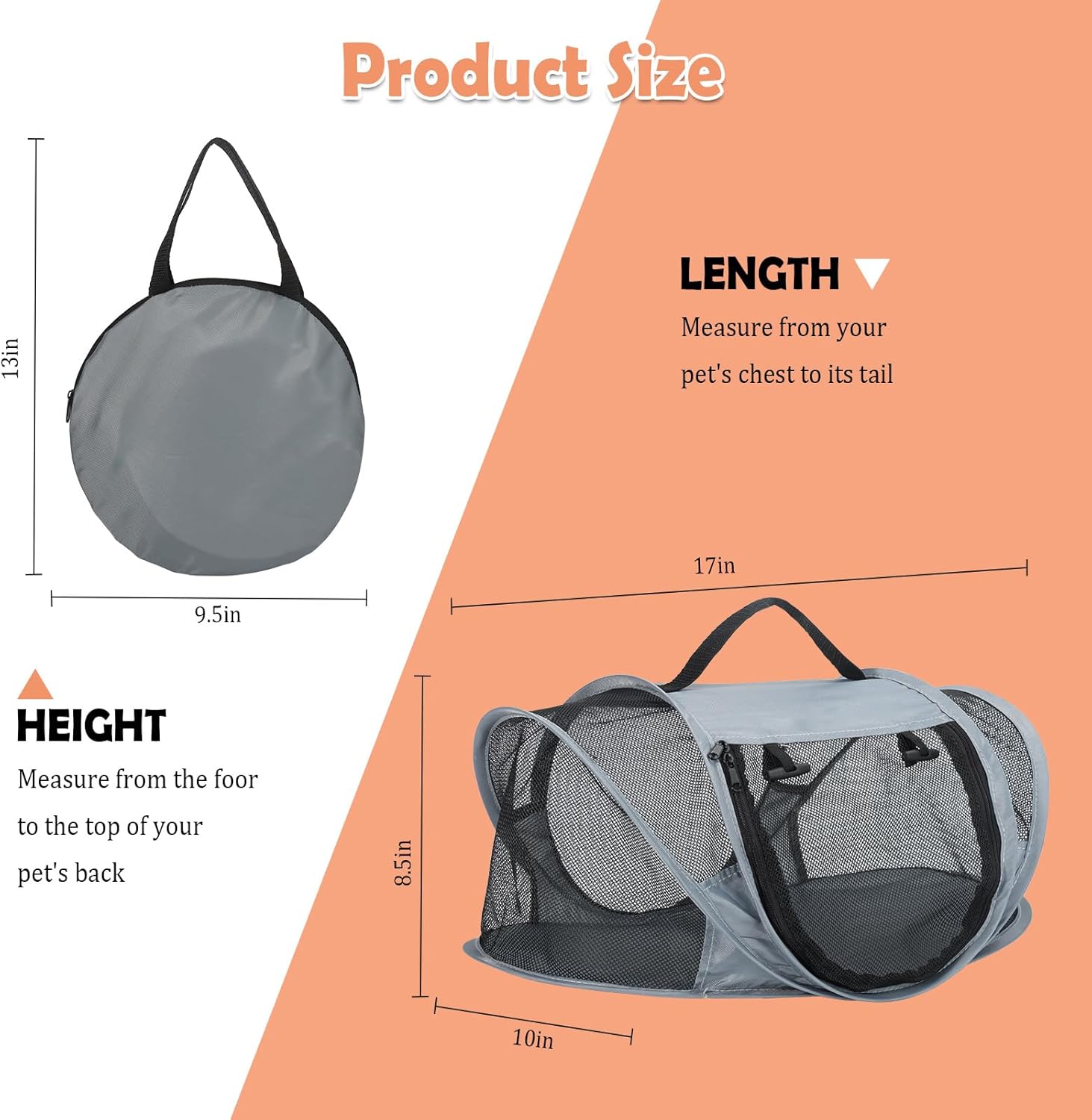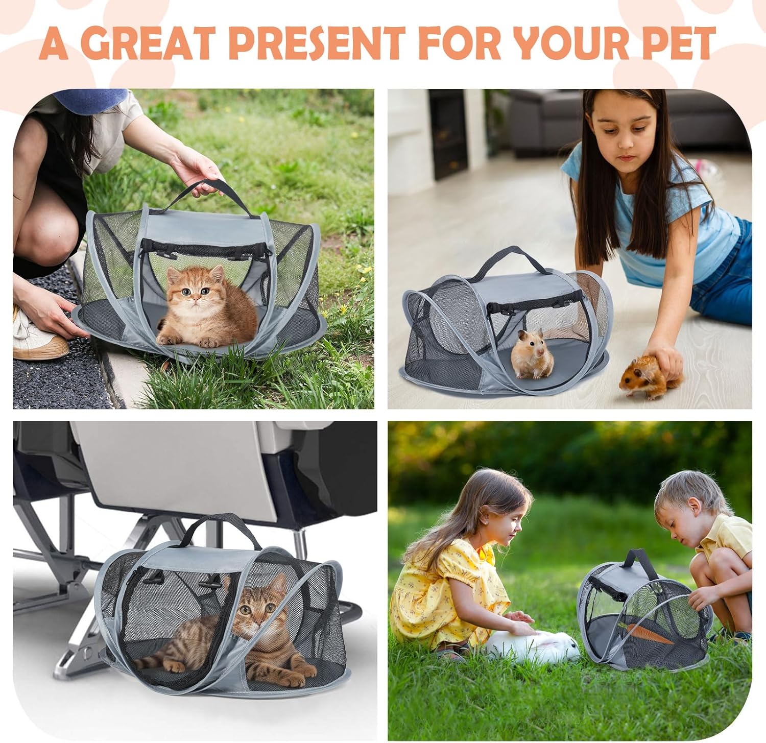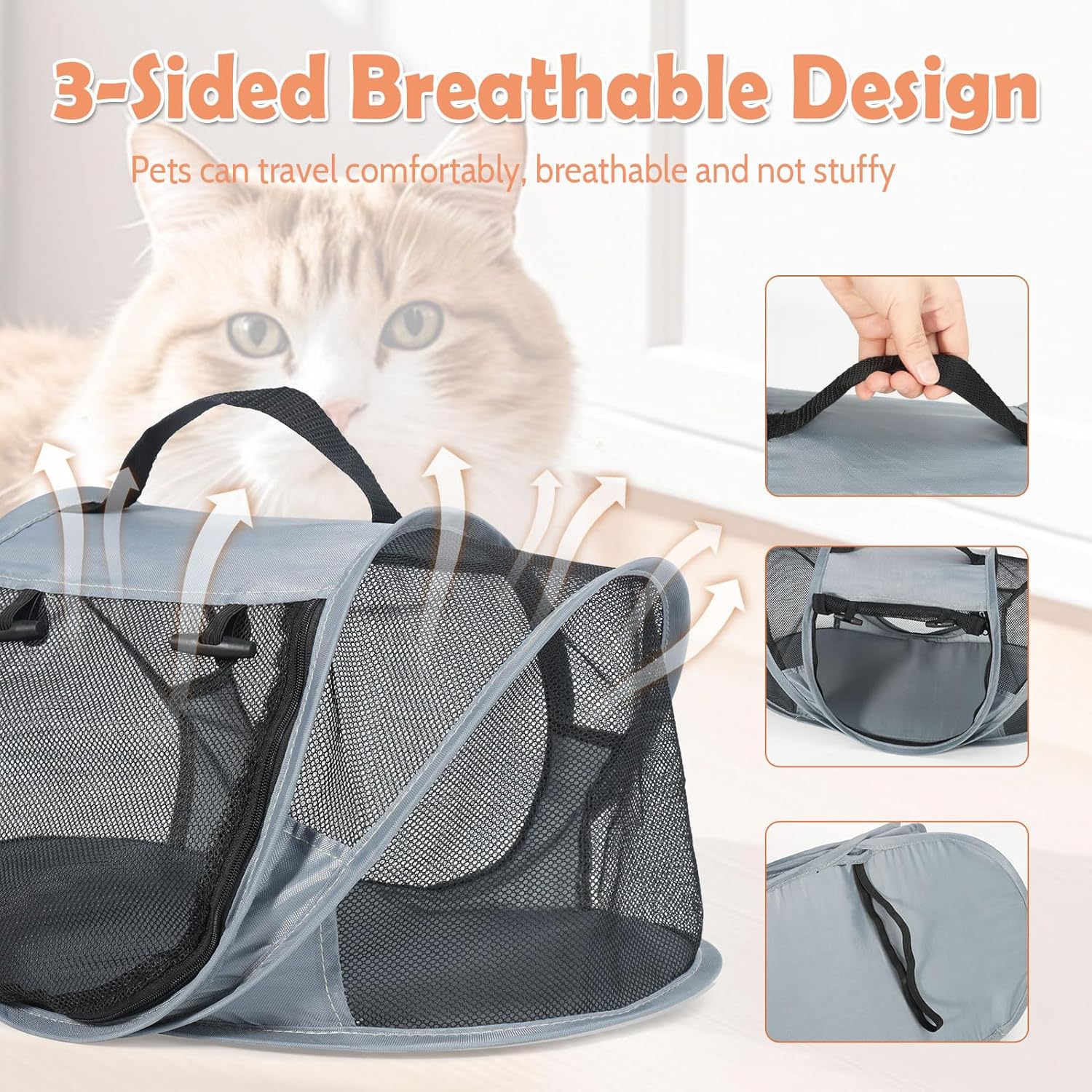 Ultra-Small Foldable Size: Designed for ultimate portability, this travel cat carrier folds down to a pocket-sized in seconds! Easily stash it in your backpack or coat pocket, making it perfect for car trips, subway commutes, or vet visits