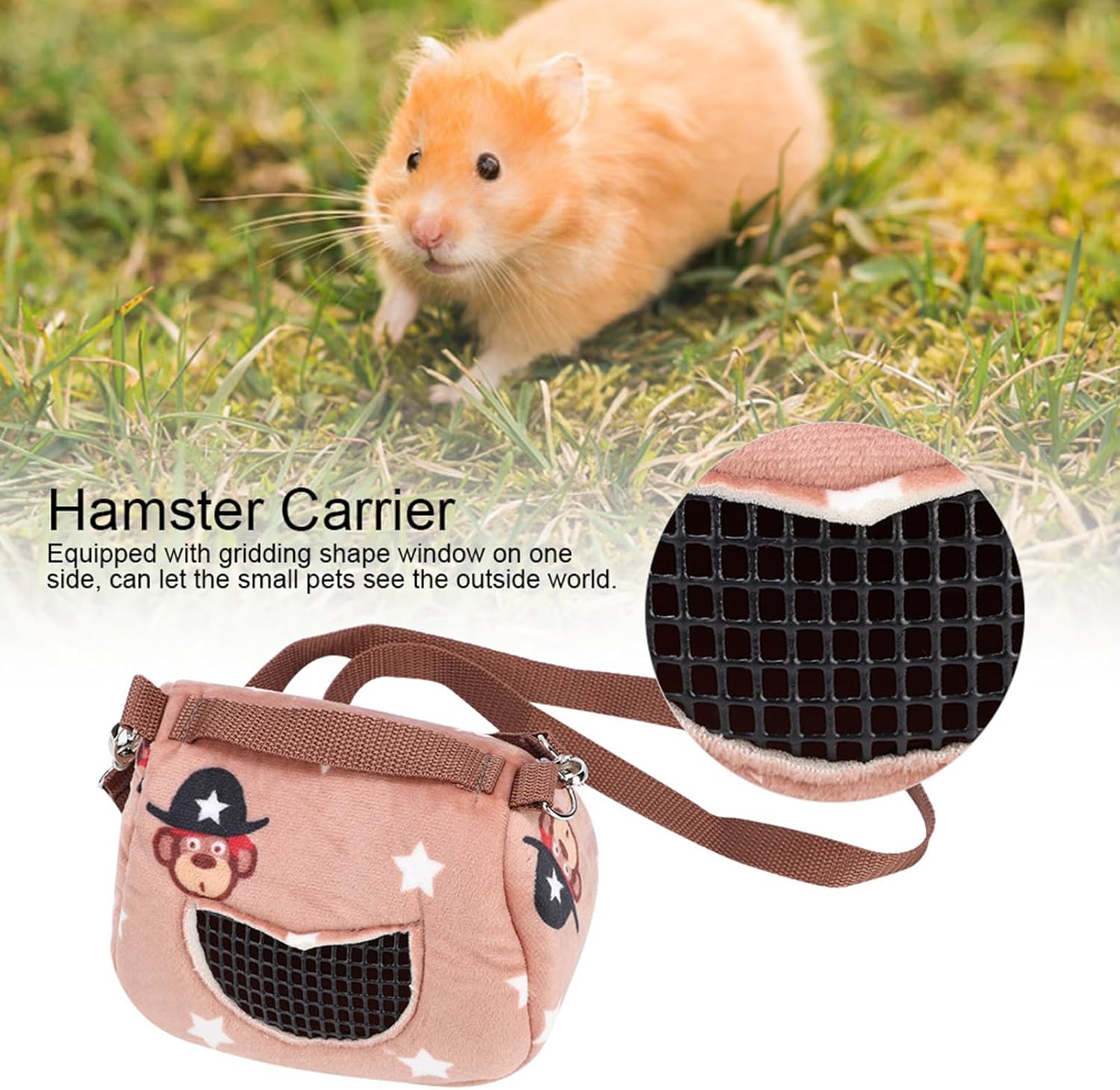 Portable Pet Carrier Bag, Coffee Flannelette Portable Breathable Pet Hamster Carrier Outgoing Bag for Small Pets Guinea Pig Squirrel Chinchilla (M)