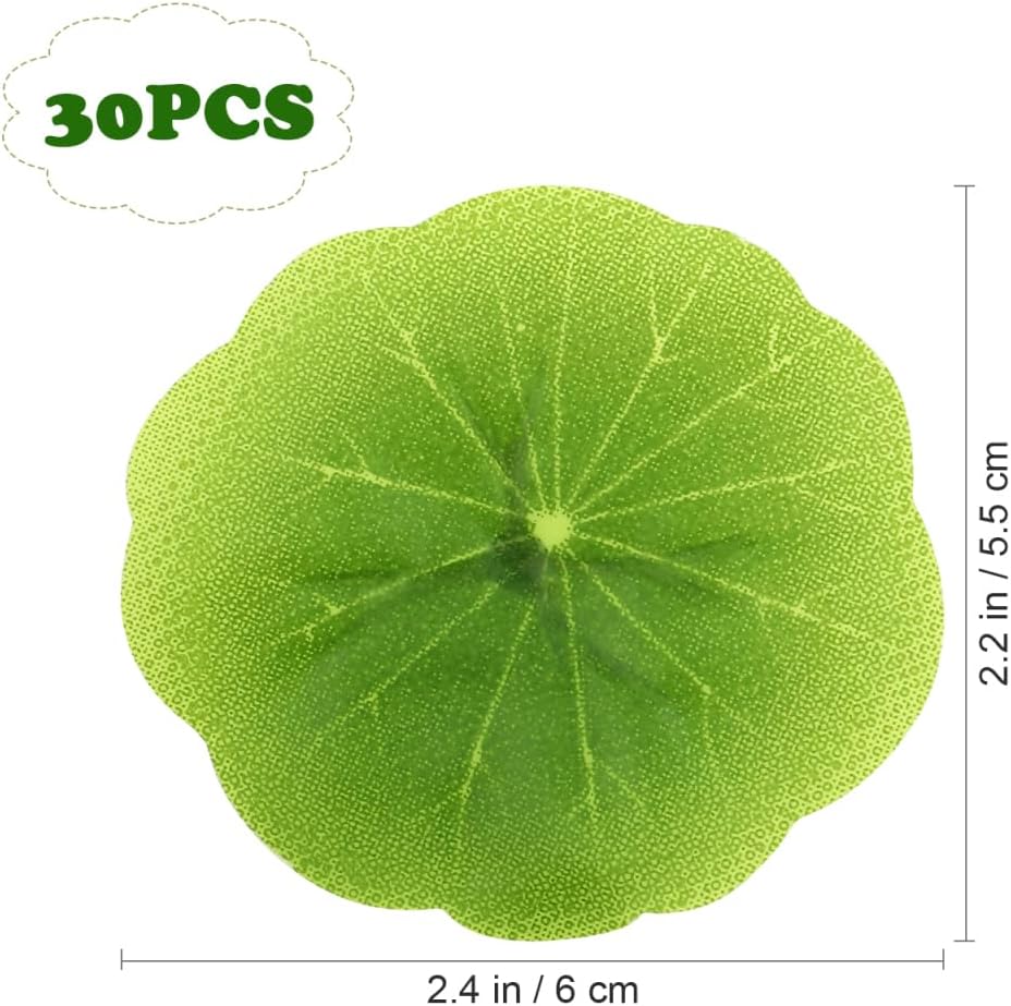 Artificial Floating LotusPackage includes 30 x Simulate Lotus Leaves; Size About 2. 36 inches. Easy to much beauty to any pond, fountain, pool, or even bathtub.