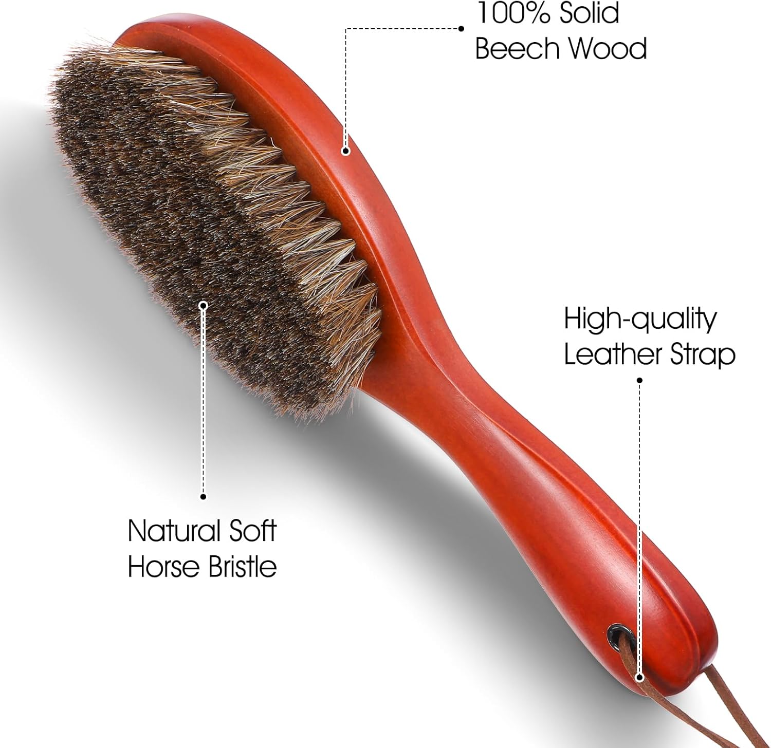 Pure Horse Bristle Brush Garment Care Lint Remover Clothes Brush with Wood Handle Laundry Stain Brushes for Pet Hair Debris from Jackets Hats Hoods Couch Suits Cashmere Velvet Suede Shoe