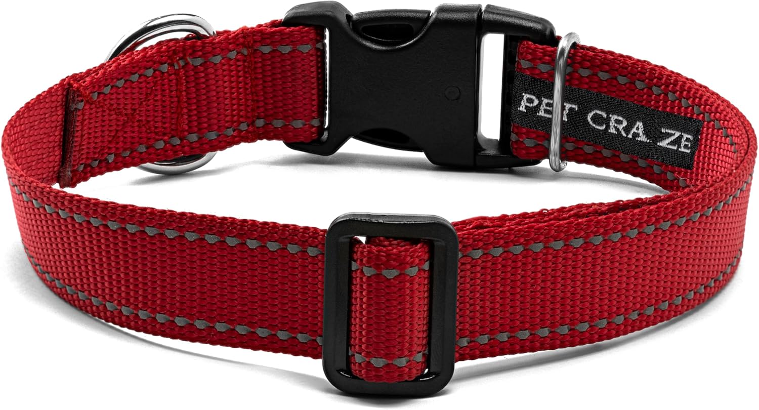 PET CRAZE Reflective Dog Collar With Quick Release Buckle Adjustable Safety Nylon Dog Collar Pet Collar S,M,L,Xl Black And Red.
