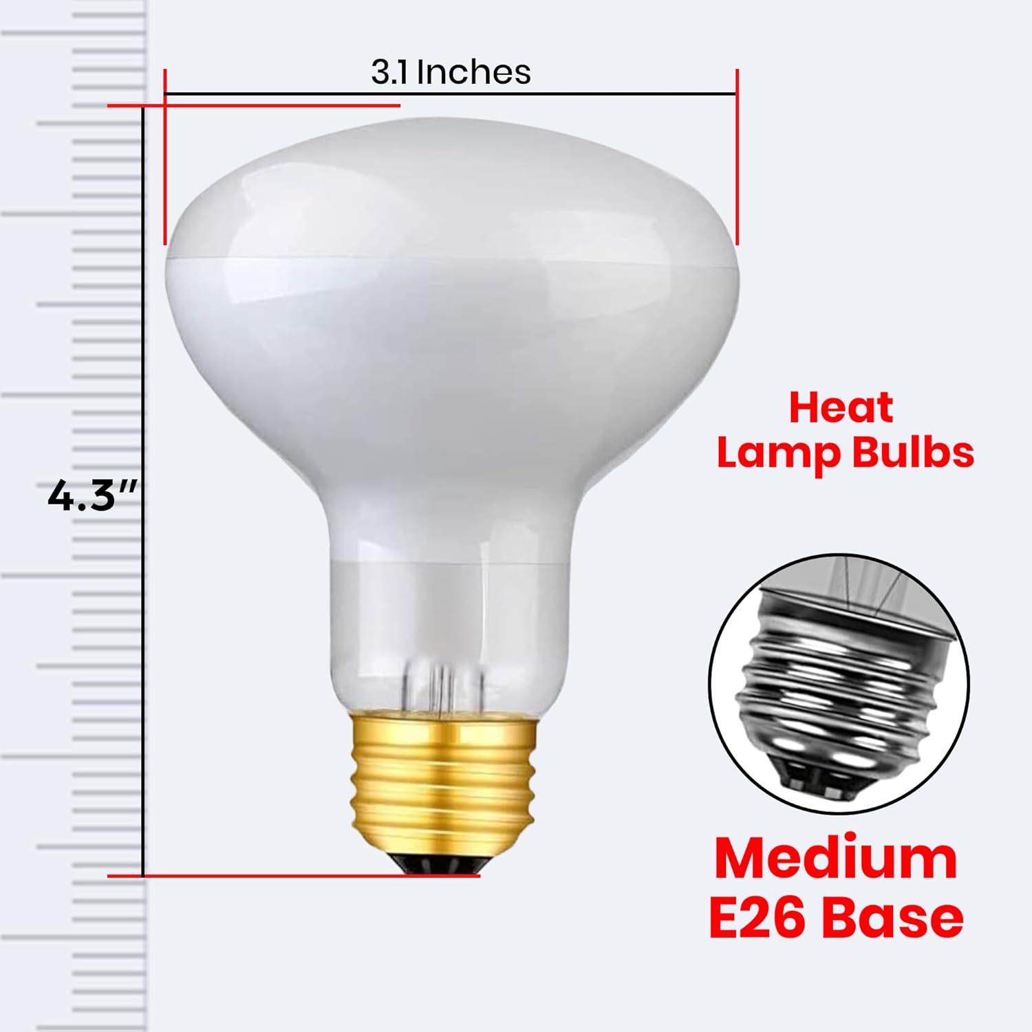 DIMENSIONS: This is a Small Heat Lamp Bulb R25 Reflector. Nominal Diameter 3.1” . MOL (Height)In Inches 4.3”. Base Diameter 1.03