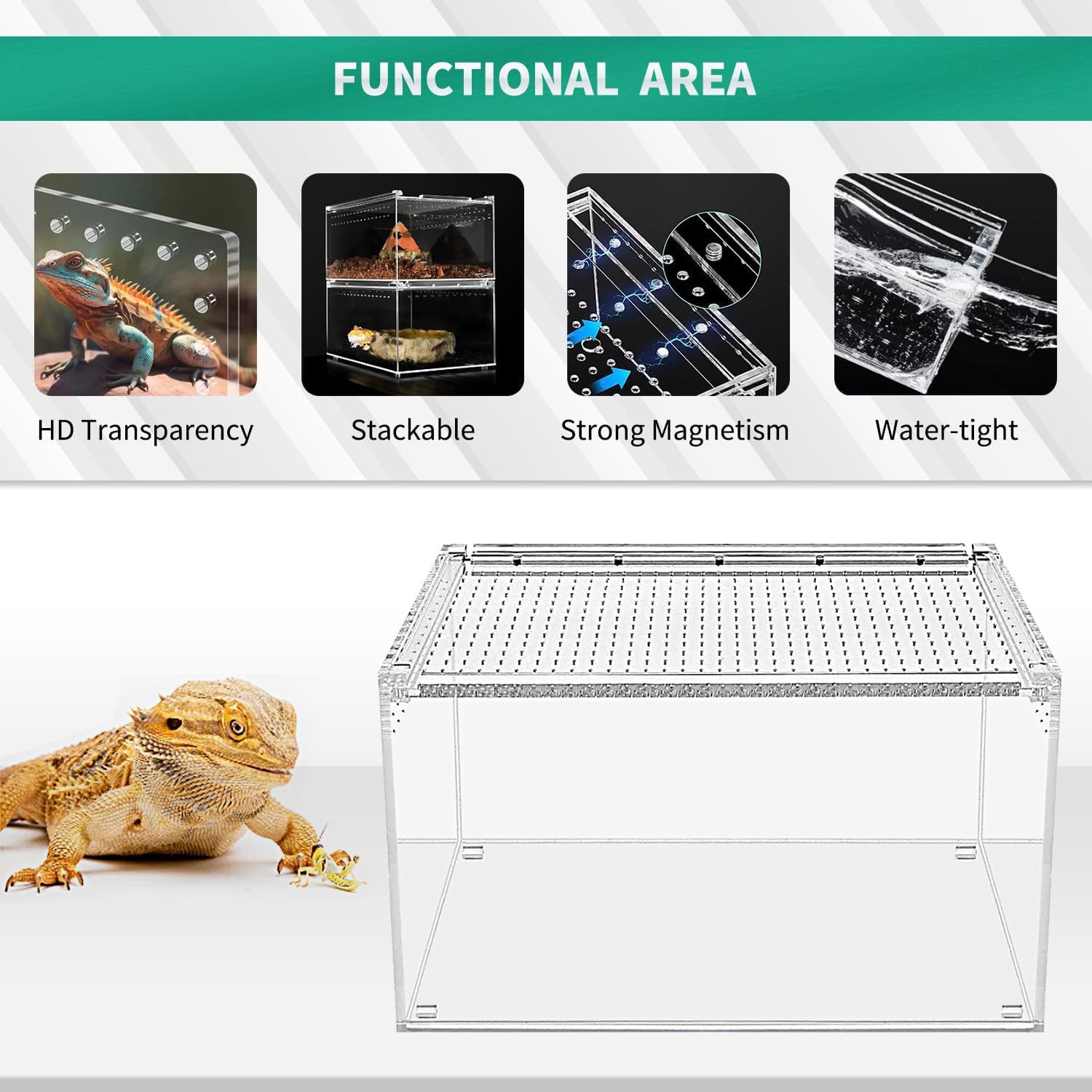 ✅【Clear Acrylic with 360 Degree full View】Reptile enclosure insect terrarium is made of high quality high quality acrylic material for durable use; 360° Full View, Visually completely transparency to observe the behavior of pets at any time and anywhere.Eco-friendly, with good transparency, safe for your pets.