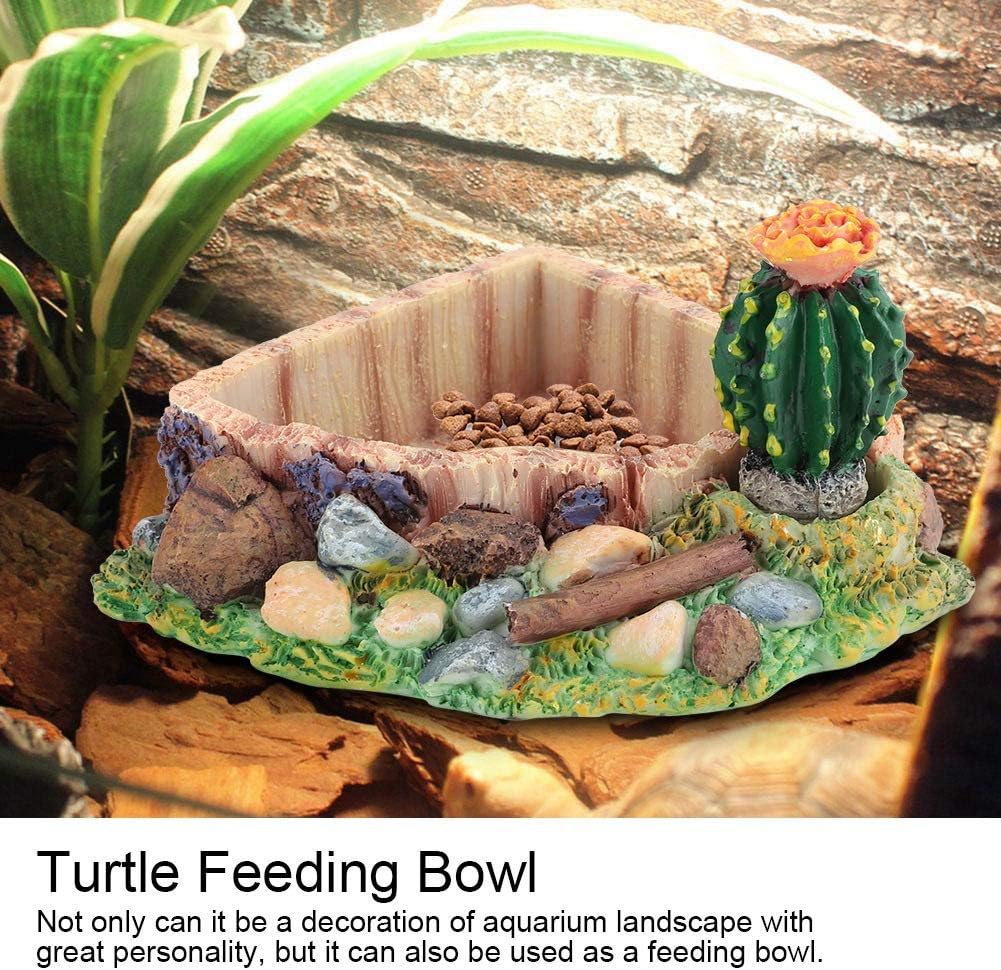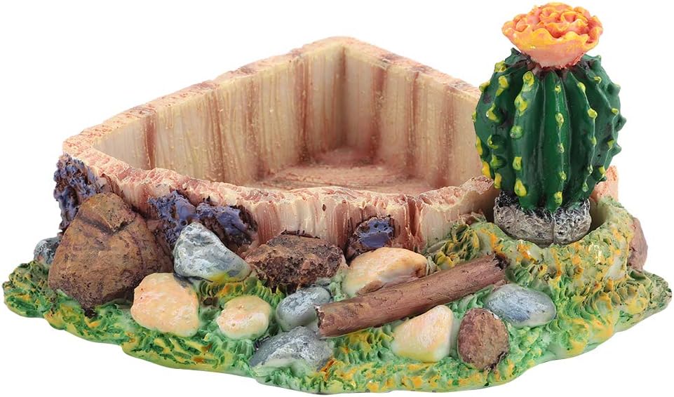 Reptile Water Dish, Resin Reptile Water Bowl with Cactus Home Decoration, Aquarium Ornament Reptile Feeding Water Bowl for Turtles Lizards Frog Gecko Chameleon