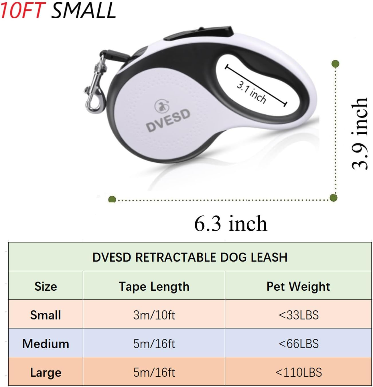 ①Suitable Choice : Small Leash is Suitable for Dogs Under 33 lbs; Medium for Dogs Under 66 lbs,Large For Dogs Under 110 lbs; Retractable Leashes Not Suitable For Chewing.