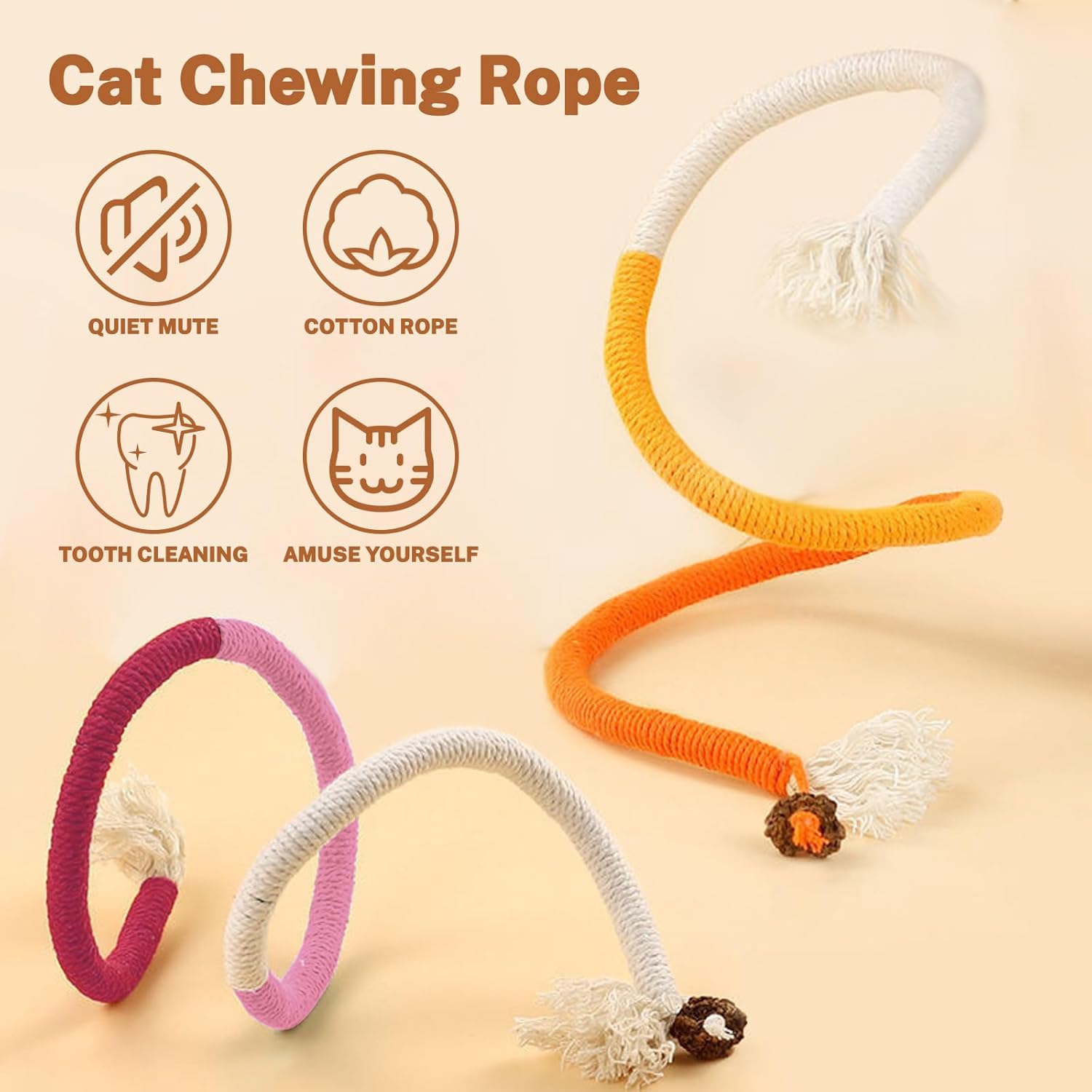 Regulate Mood Toys: During play, the dangling catnip at the end of the rope cat toy continuously sways, igniting your cat’s curiosity and natural hunting instincts. Plus, rope rotation provides continuous stimulation and endless amusement for your cats.