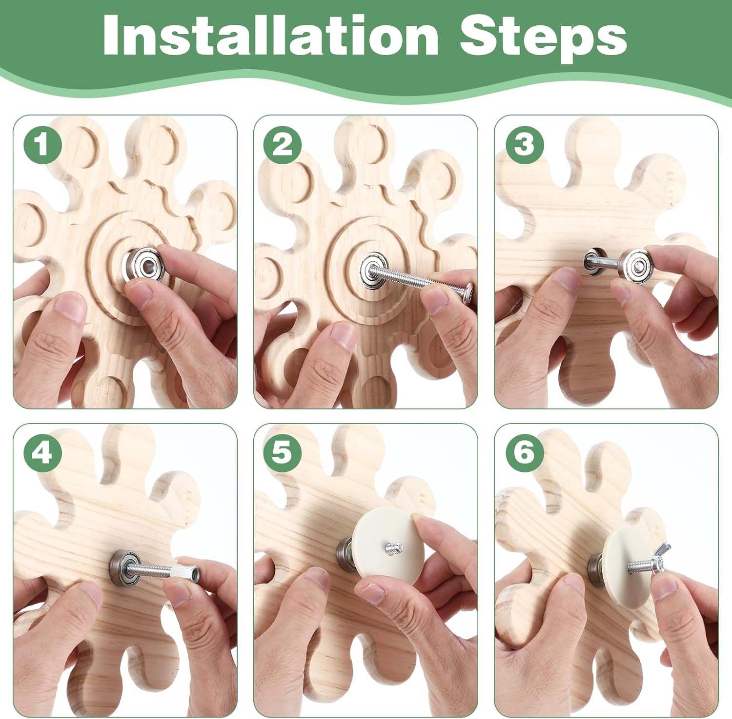 Rotating Chinchilla Toy Set: This chinchilla chew toy set includes 1 rotation toy, 1 screw, 2 bearings, 2 washers, 1 hexagonal screw barrel, and 1 nut. All components required for toy assembly are included, ensuring quick and easy installation for your pet to enjoy. Great for chinchillas, hamsters, and other small animals for both entertainment and exercise.