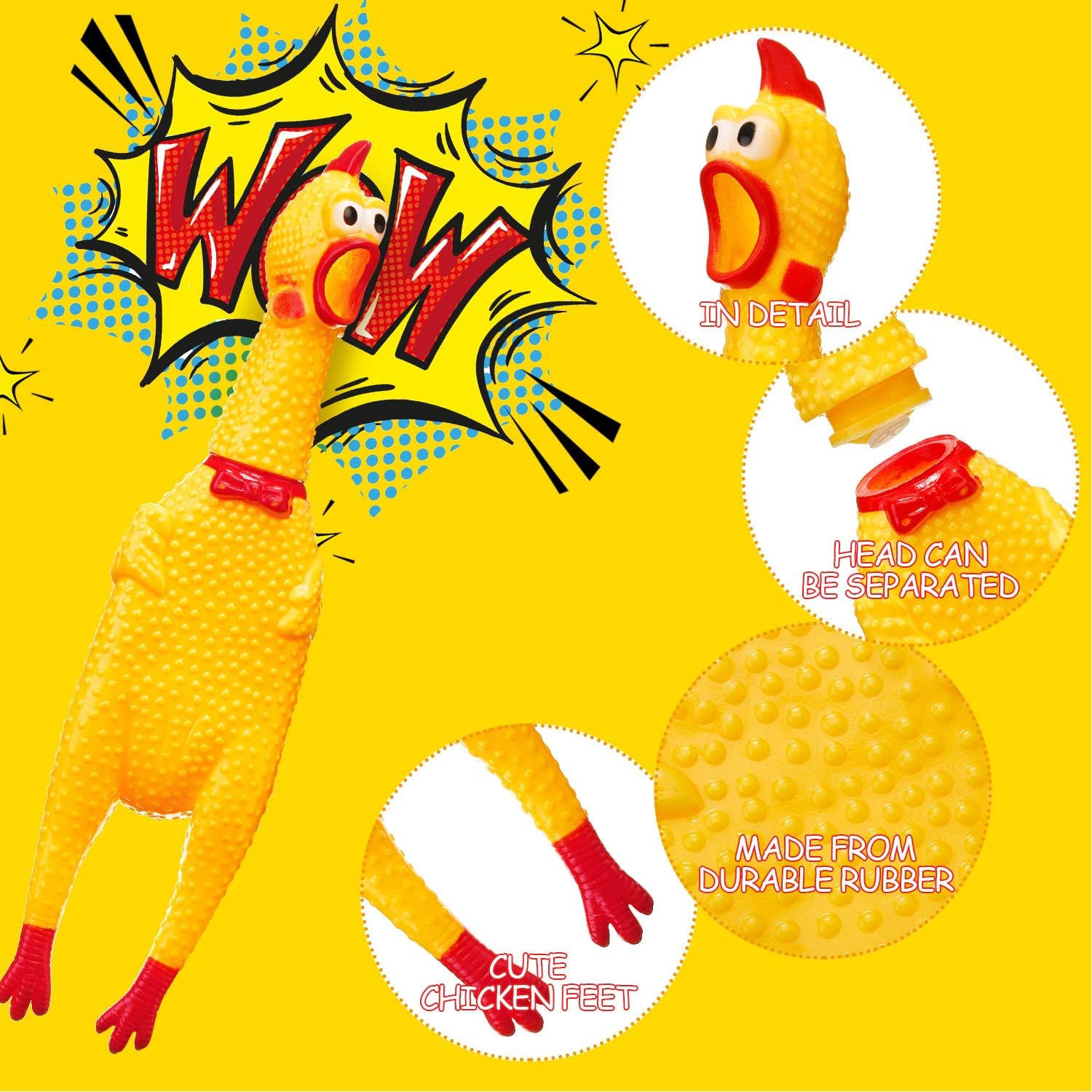 Relaxation: you will hear inhale and exhale squeaky sound by playing with these screaming chicken, which will make you laugh for a long time; Silly screaming chicken and hilarious sound will help you get relaxed