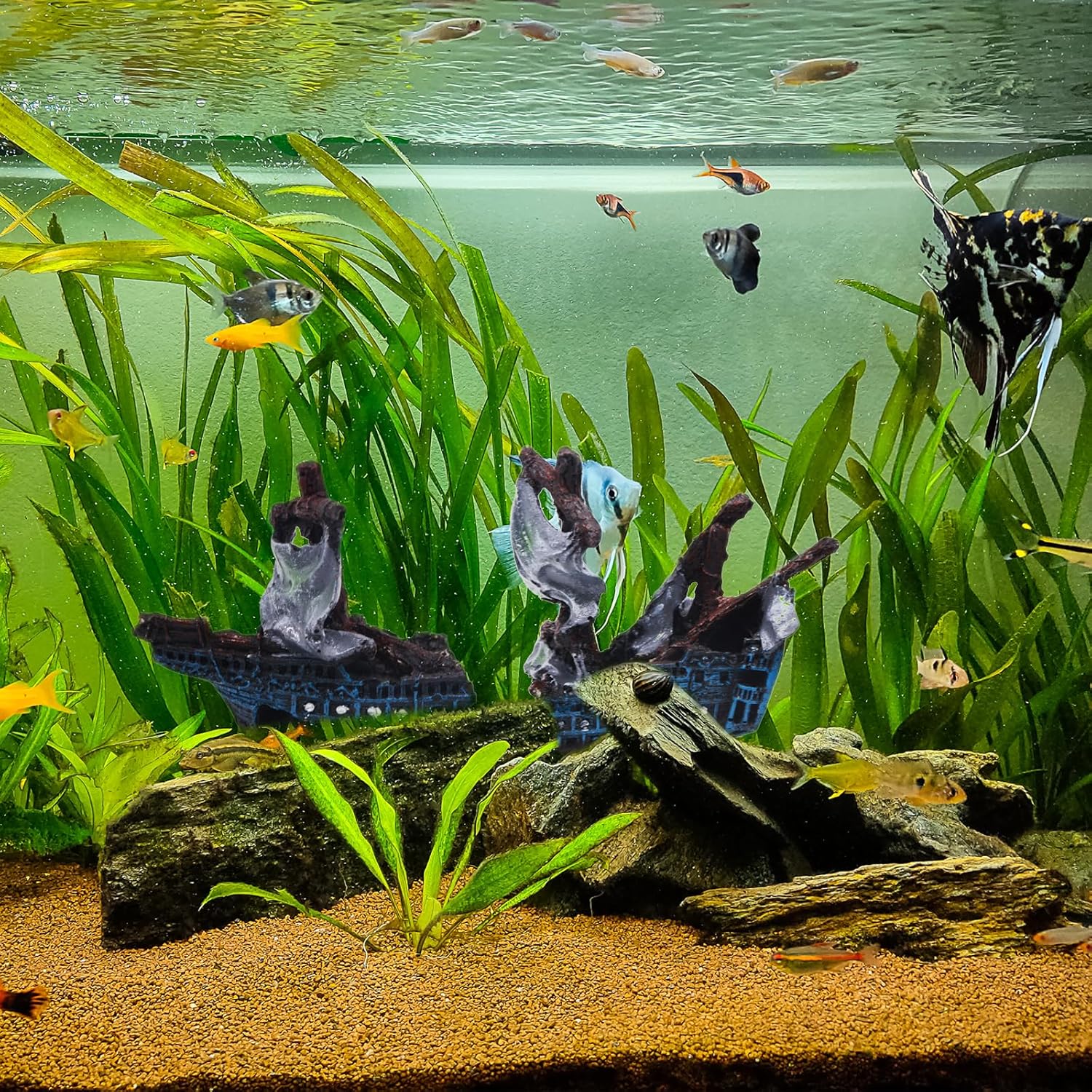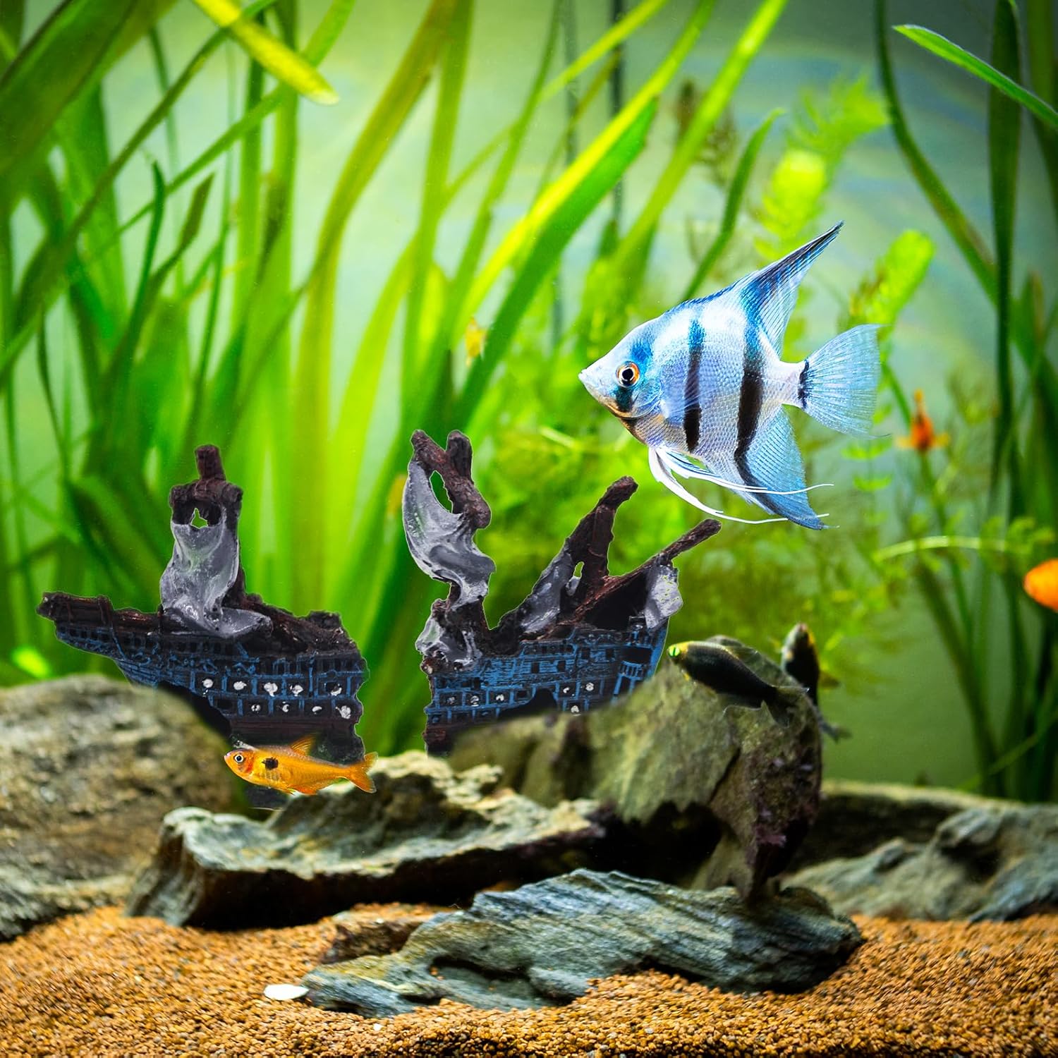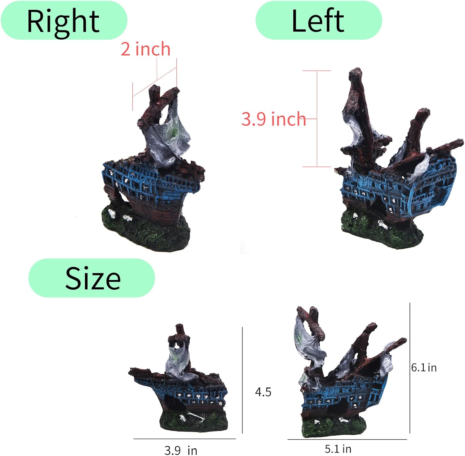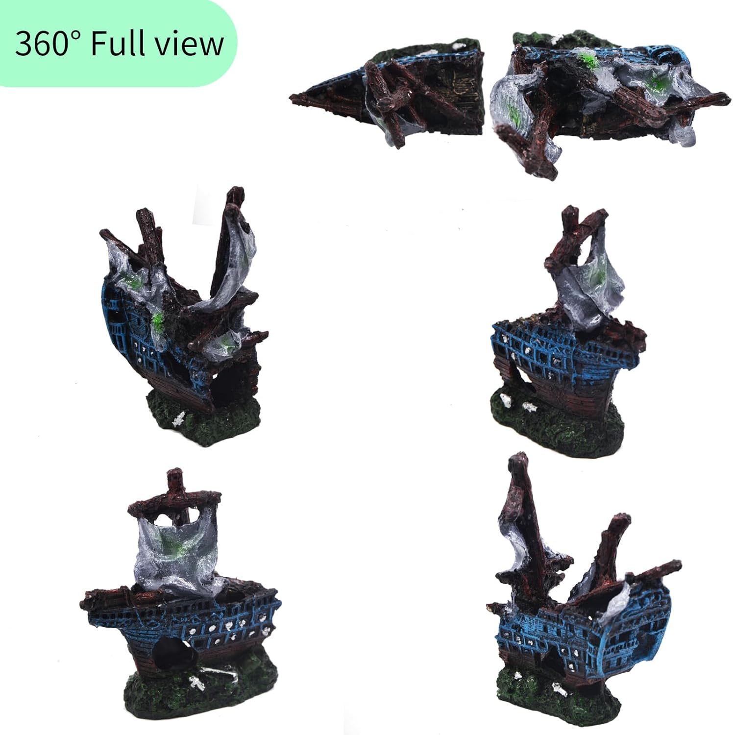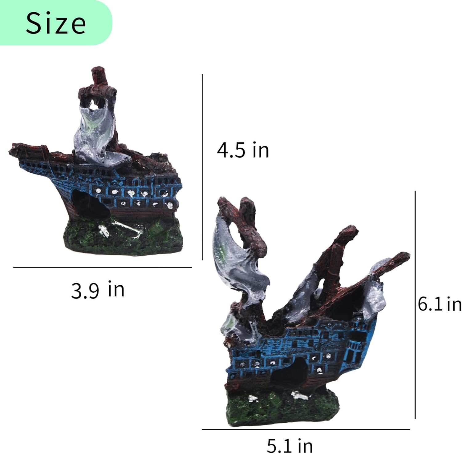 Eco-Friendly Material: Crafted from ECO-Friendly resin material, our shipwreck decorations are non-toxic, non-pollutant, and safe for both your fish and water quality.