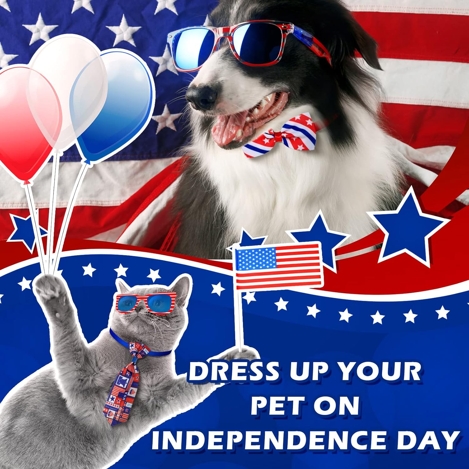 Saintrygo 32 Pcs 4th of July Dog Bow Set Includes 16 Pcs Patriotic Dog Bow Ties and 16 Pcs Dog Neckties with Independence Day Adjustable Collar Pet Grooming Accessories for Memorial Day(Star Style)