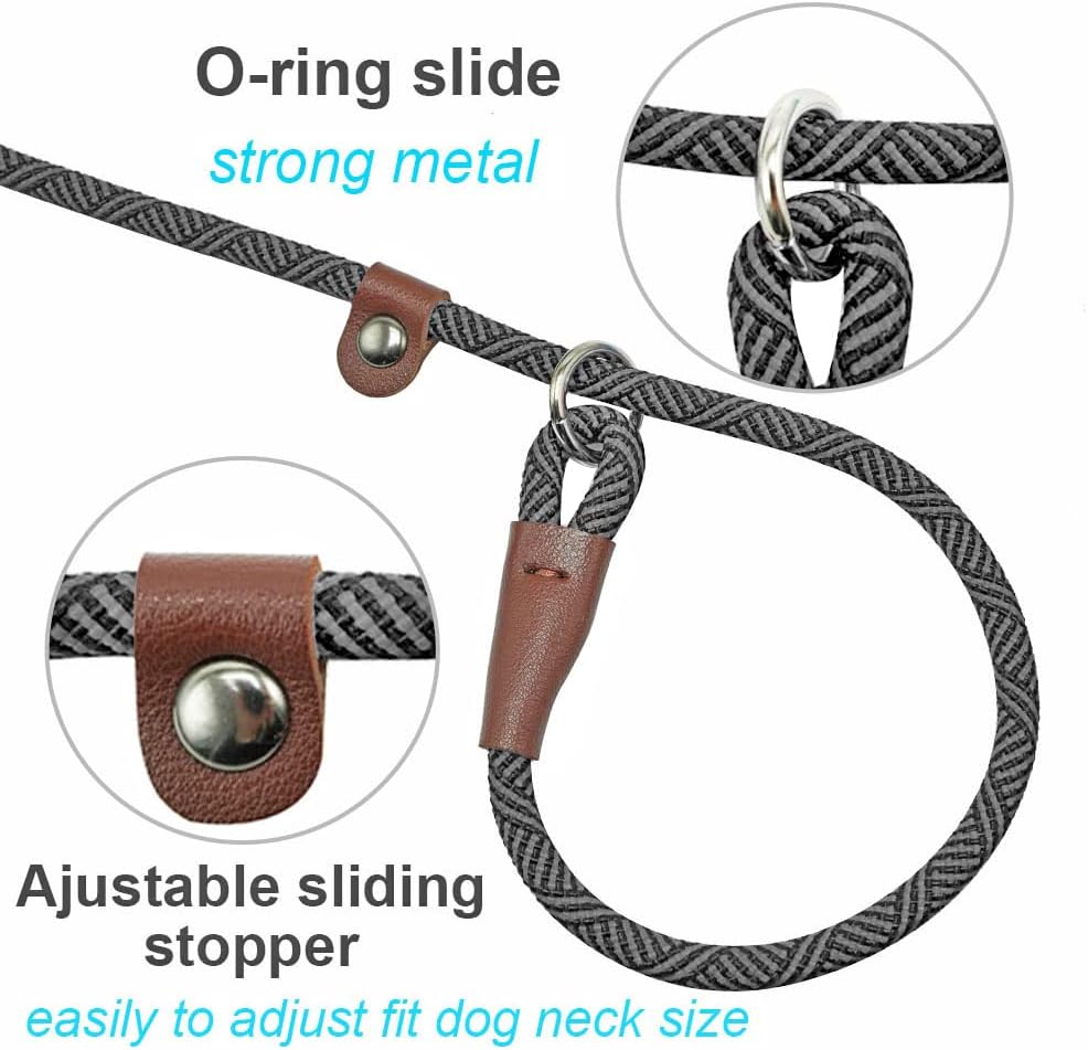 Slip Lead Dog Leash, 1/4″ x 5ft No Pull Slip-on Training Leash for Small and Medium Dogs (Black)