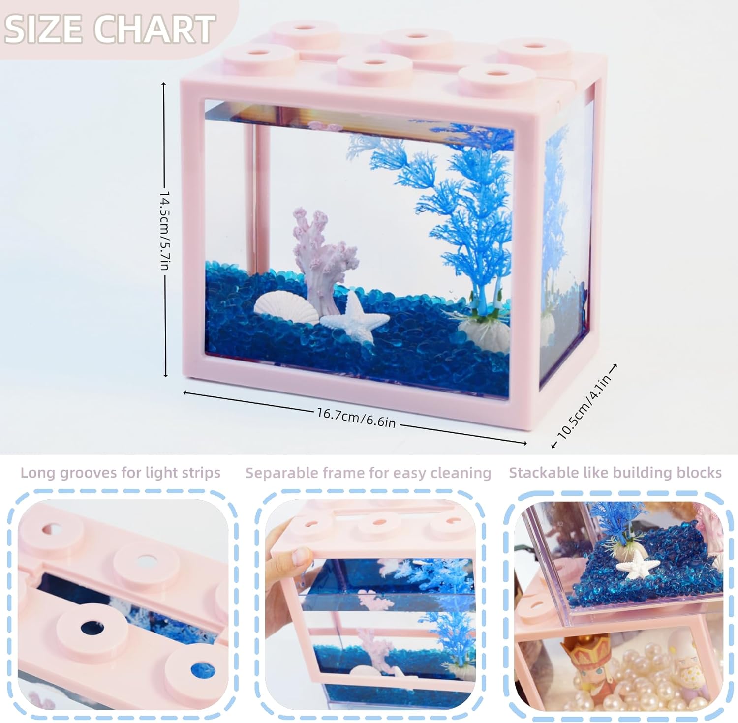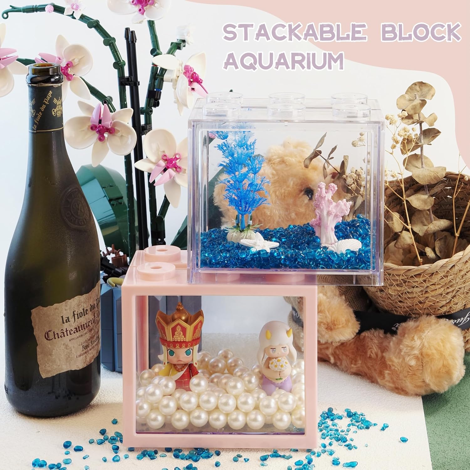 Unique block shape : The Miniature Building Blocks Fish Tank has 6 protruding columns at the top, which keep small aquariums securely stacked together. Decorate your dining table and walls by stacking multiple fish tanks into different shapes.