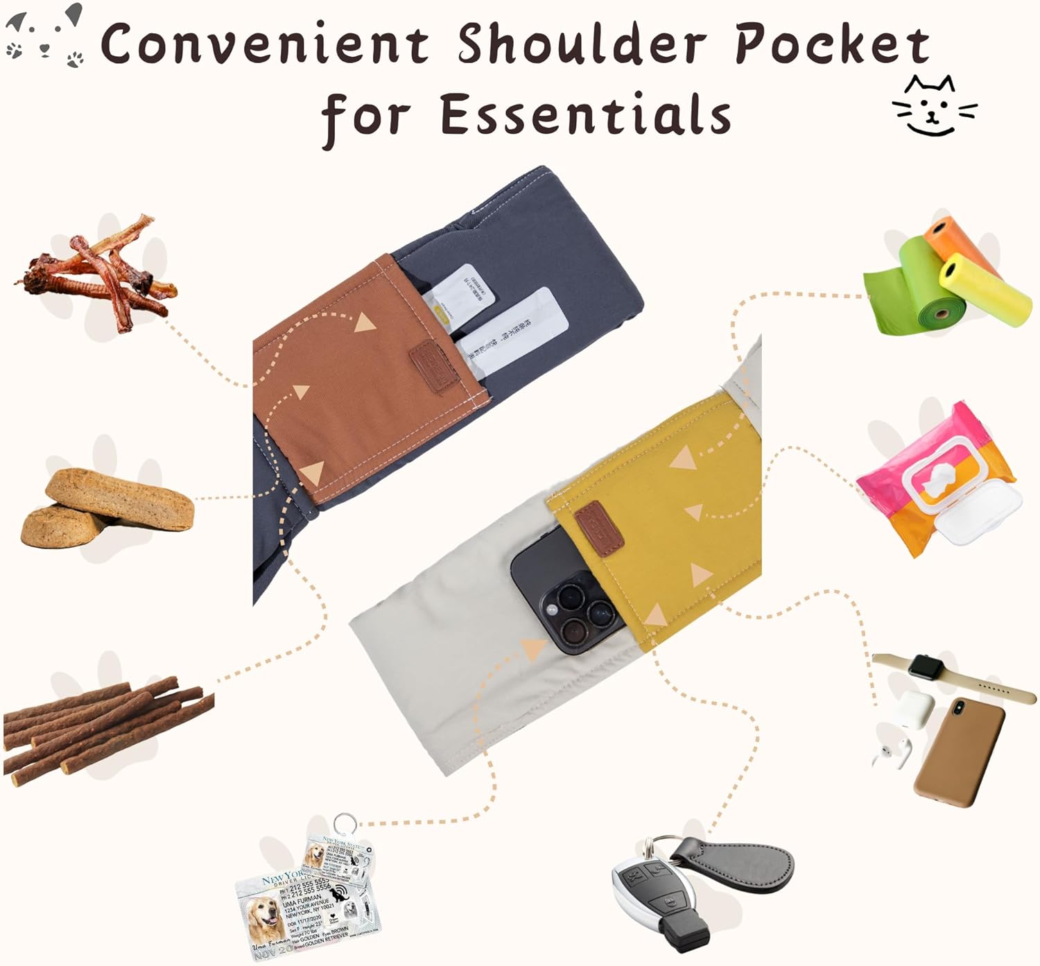 Compact Storage Pocket: The shoulder strap includes a small but handy storage pocket, perfect for lightweight essentials like pet treats, waste bags, or slim items such as cat sticks. It ensures you have the basics within easy reach, making it convenient to meet your pet’s needs while you’re out and about.