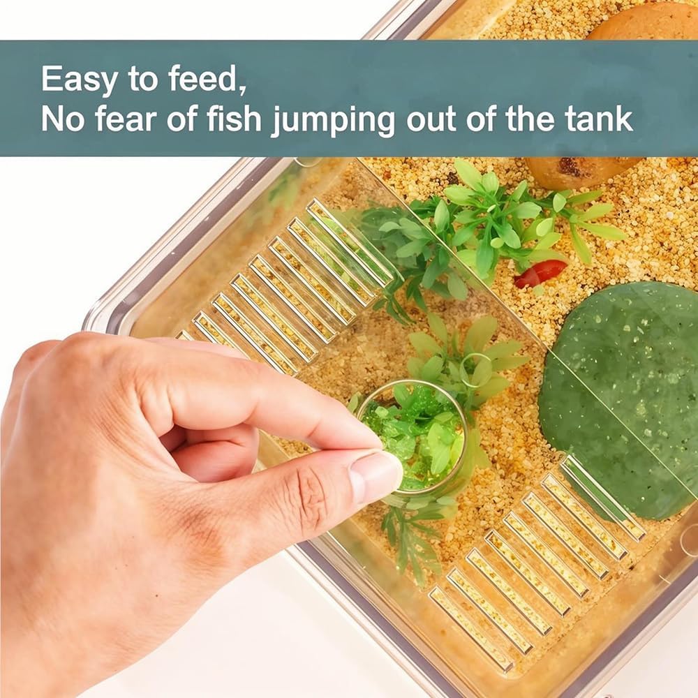 🐠【Self Cleaning Fish Tank】This small tabletop aquarium is perfect for keeping betta fish, peacock fish, small shrimp, small crabs, turtles. It is compact and can be placed on any table, shelf or countertop. Easily bring beauty into your life.