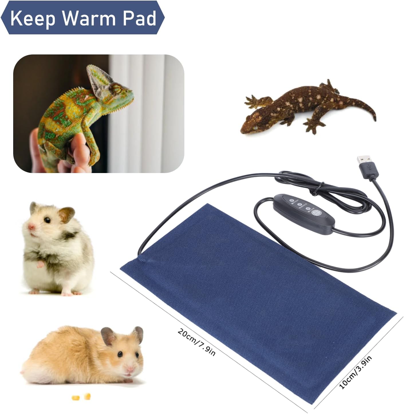 Item type: Heating Mat Material: plastic Suitable pet type: lizards and other reptiles pets Product function: heating pad for keeping warm for reptiles pets Size: Small: Approx. 20 x 10cm / 7.9 x 3.9in Package List: 1 x Heating Mat