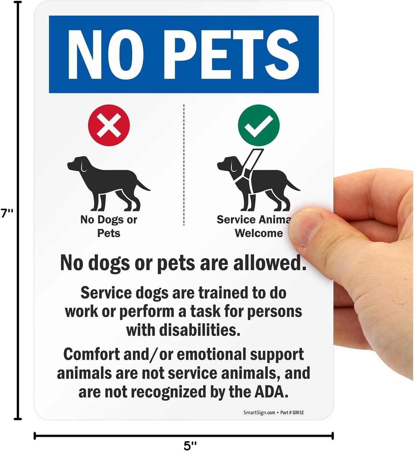 SmartSign (4-Pack) 7″ x 5″ ‘No Pets No Dogs Or Pets Allowed, Comfort/Emotional Support Animals’ Sticker Labels with Dog Symbols, 5 mil Laminated Polyester with SuperStick Adhesive, USA-Made