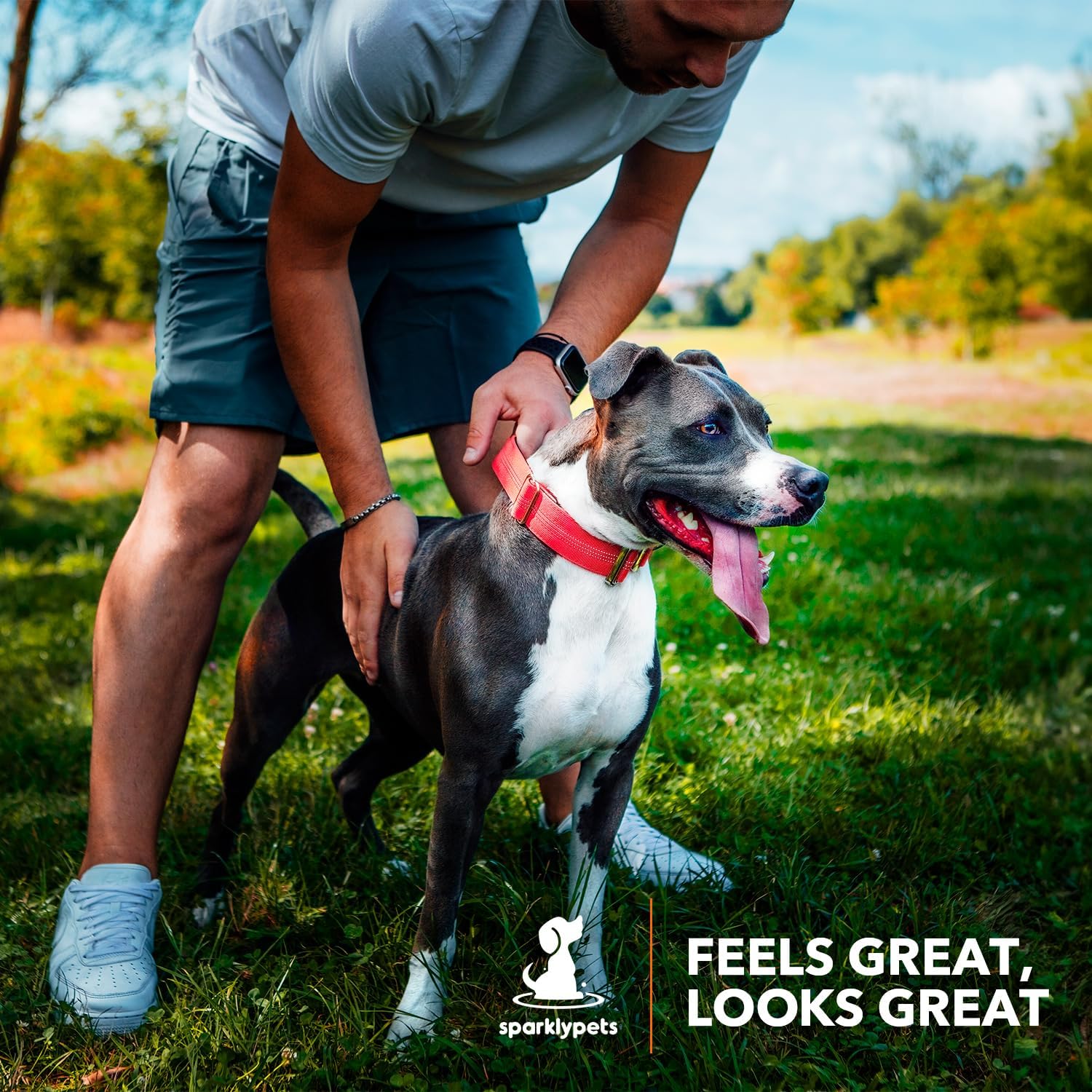 Reflective stripes for high visibility during night walks – our SparklyPets tactical collar for dogs features highly visible reflective stripes, ensuring your dog’s safety during nighttime walks. Choose the SparklyPets tactical dog collar for large dogs to keep your furry friend always visible.