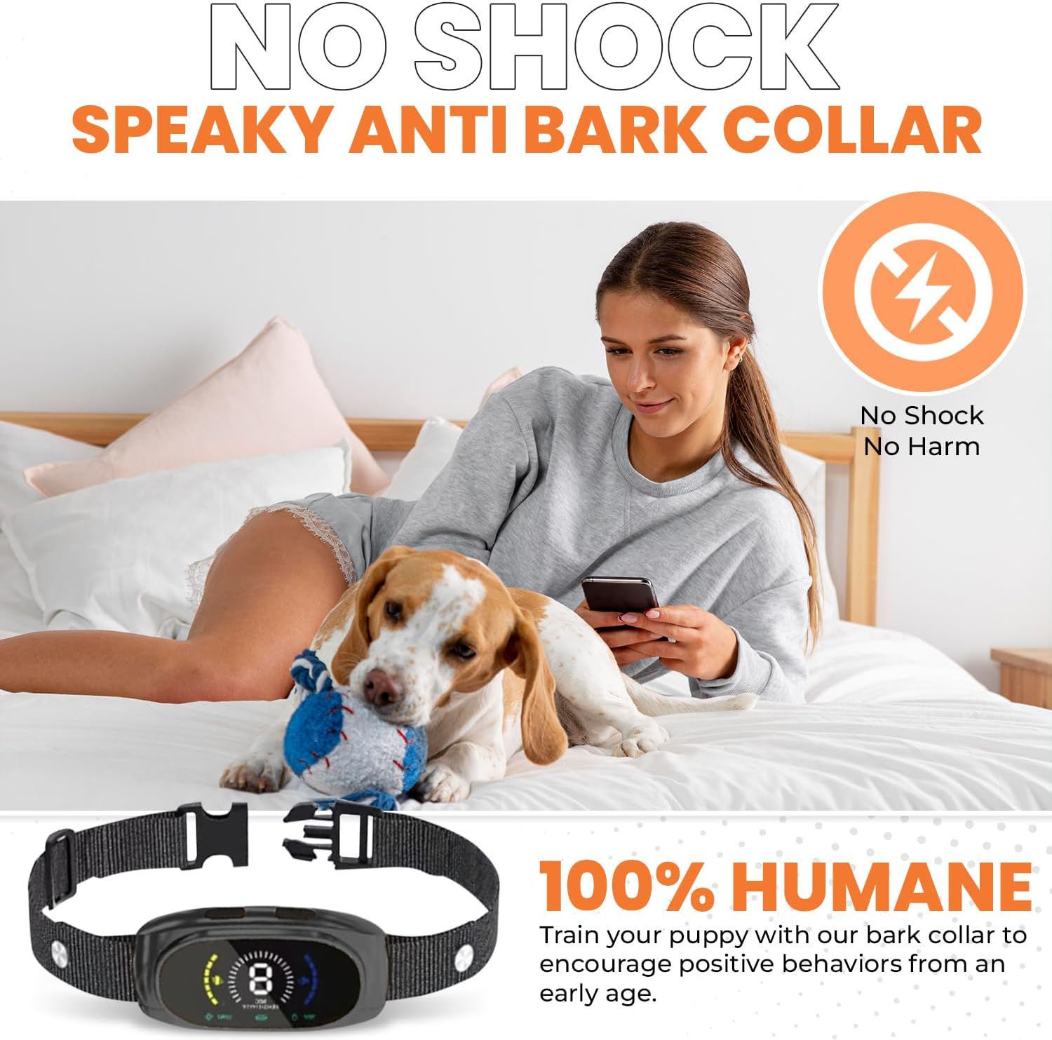 SPEAKY Bark Collar – No Shock Device for Small, Medium & Large Dogs – 8 Sensitivity Levels – Beep & Vibration – Smart Detection – USB-C Rechargeable – IPX7 Waterproof
