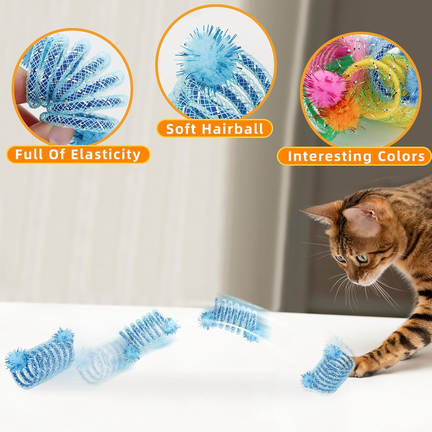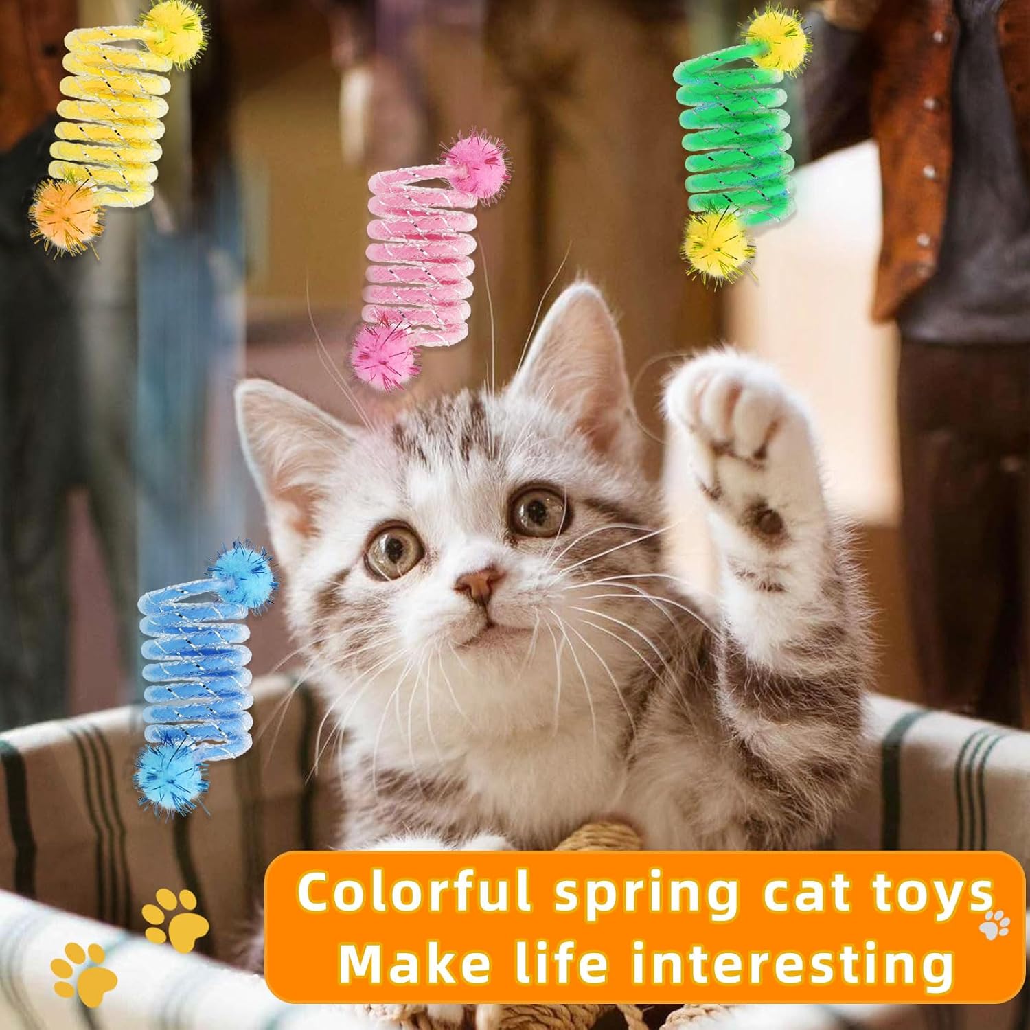 Spring Cat Toy: The cat spring has elasticity and can stretch freely, quickly rebounding. When thrown on the ground, it will bounce randomly, attracting cats to chase, pat, and bite these springs. They will have a lot of fun playing with them