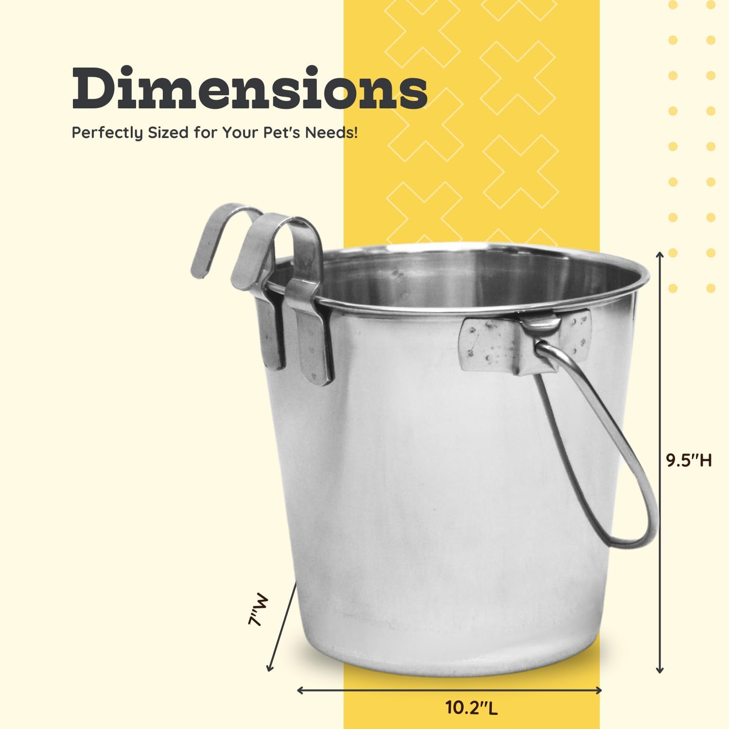 Stainless Steel 9 Qt Dual Hook Flat back Sided Pail- Dogs, Goat, Sheep, Small Cattle-Horse Food Water Hanging Bucket| Kennel, Fences, Critters-Crates| Multipurpose Pet Pails (2.25 gallon)