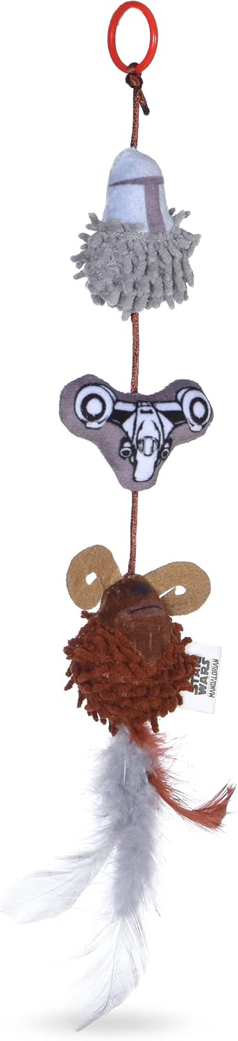 STAR WARS for Pets Catnip The Mandalorian & Bantha Cat Teaser Toy with Feathers and Elastic Loop for Interactive Play | Interactive Toy for Cats | Cat Exercise Toy with Feathers and Catnip