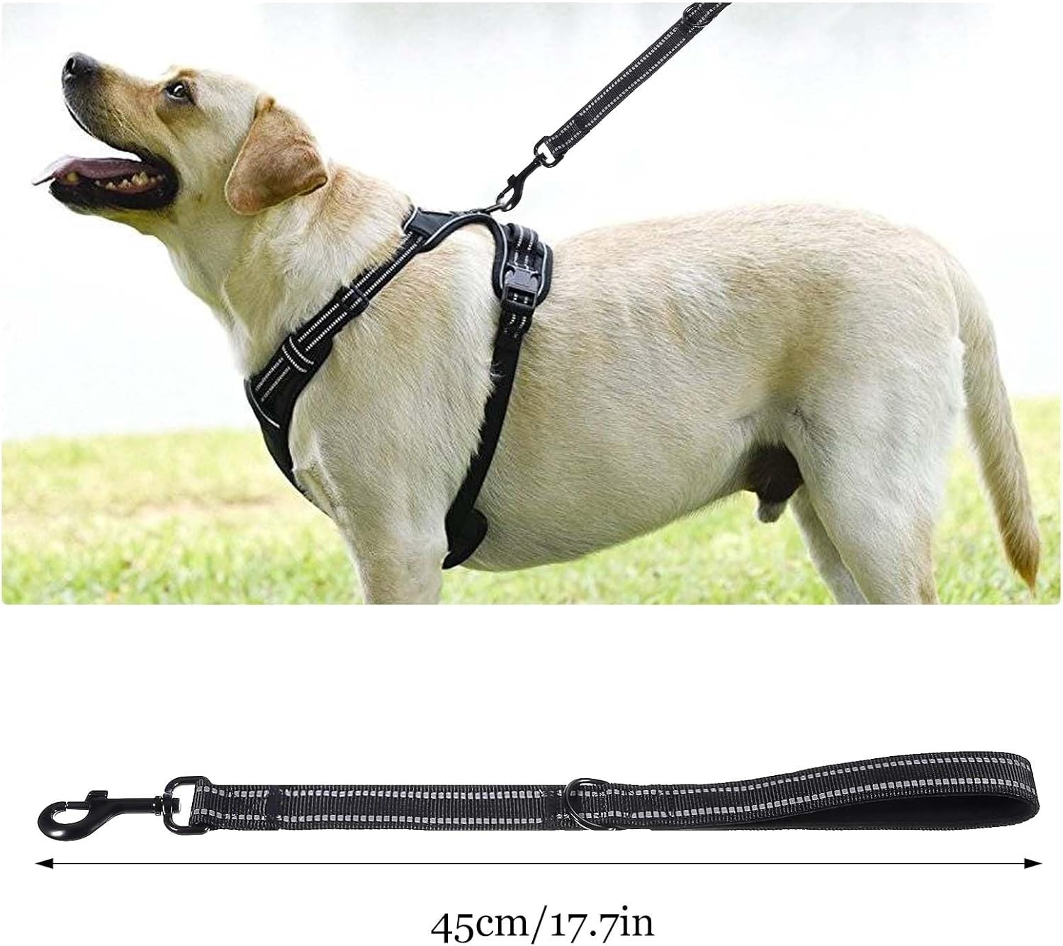 Strong Short Dog Leash 17.5 Inch, 1.3 Inch Wide, Strong Heavy Duty Nylon Tab Padded Handle for Traffic Control Reflective Leash Rope with Carabiner Clip for Medium Large Dogs Walking Training Black