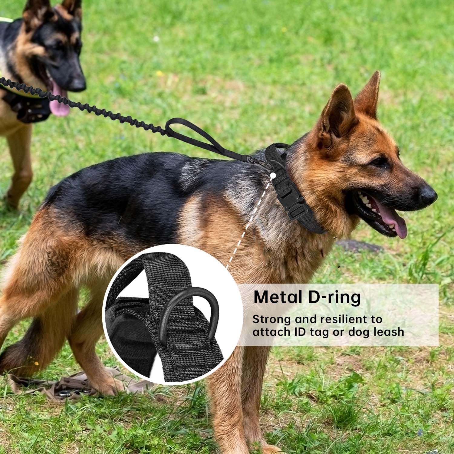 【DOUBLE SECURITY】Military training dog collar adopt integrated collar design, have heavy duty metal buckle,can release it quickly, strong and double,security for your dog. Metal buckle is adjustable, easy to put on and take off, you can change the length of collar based on dog’s neck size.