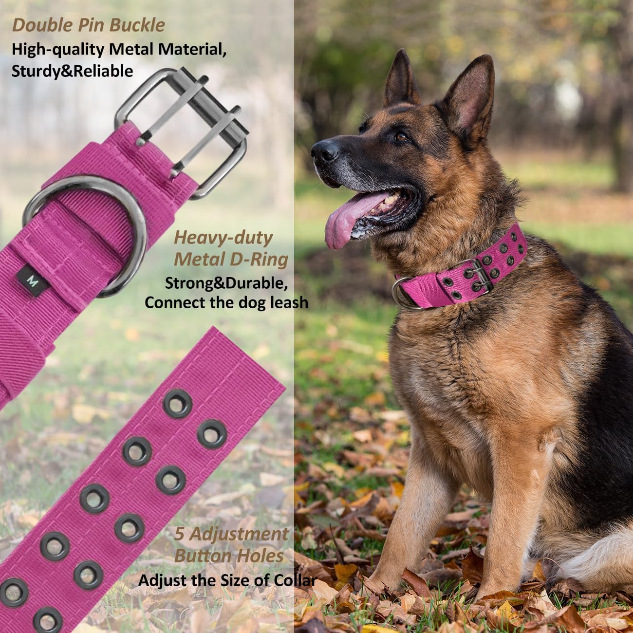 Tactical Dog Collar with Handle, Military Adjustable Heavy Duty Metal Buckle Dog Collars Soft Nylon Training Collar for Medium Large Dogs (Pink, Large)
