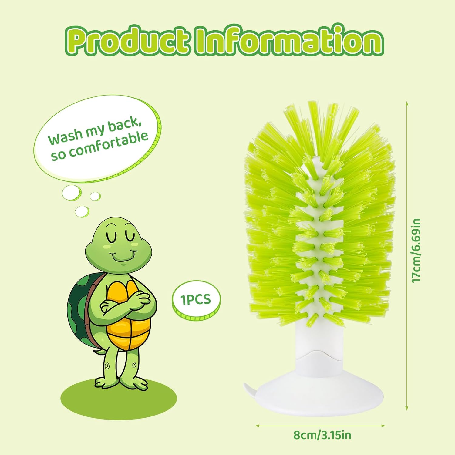 Convenient to Use: The turtle shell brush has a soft suction cup base, allowing it easily attached to glass, convenient for next use.