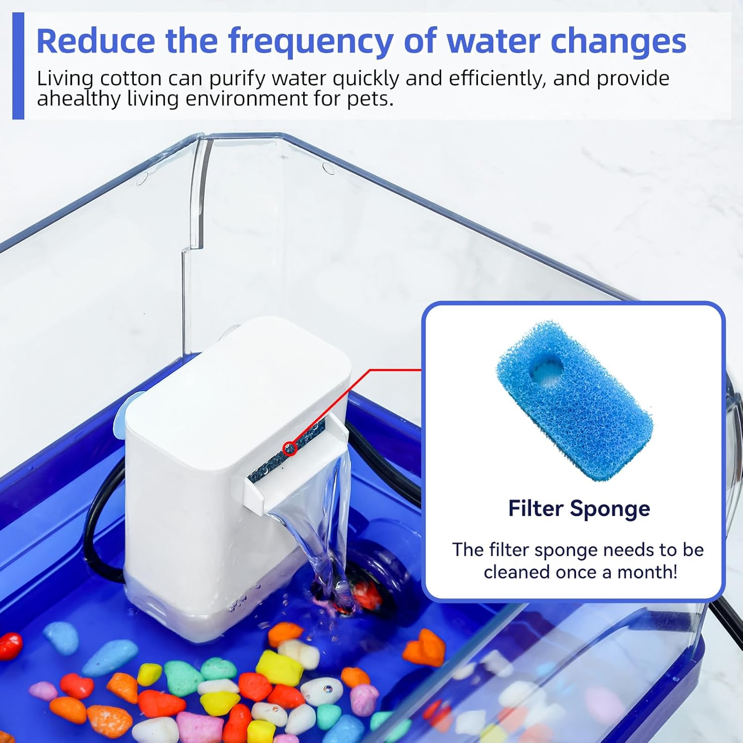 Turtle cage Tortoise Terrarium with Pump&Filter with Shower Function Easy to Change Water and Clean Water for Turtle Horned Frog Hermit Crab (Blue, Medium)