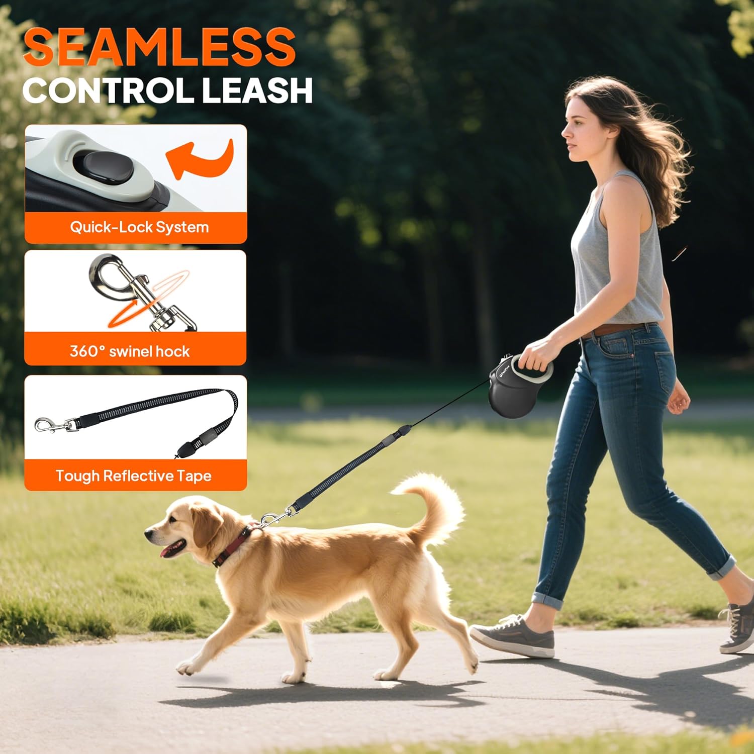 Quiet & Easy for Daily Use – This dog leashes for large dogs heavy duty can be retracts smoothly and silently, great for walking, jogging, running, camping, hiking, or out for a stroll in backyard activities