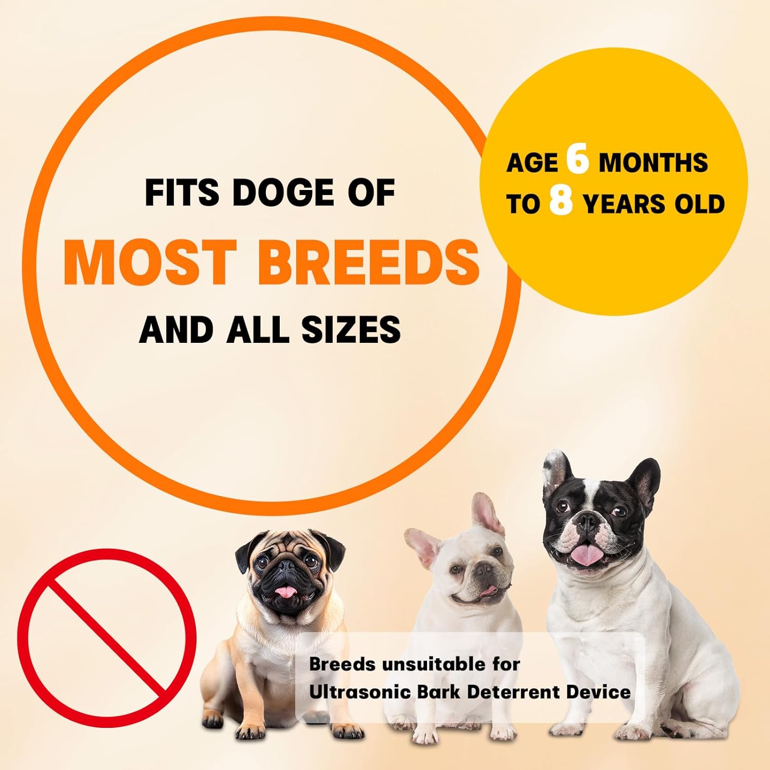 【Long-Lasting Battery & Clear LCD Display】The 1200mAh rechargeable battery supports weeks of training, while the LCD screen shows active modes and battery levels. Ideal for most breeds (6mo-8yr), excluding brachycephalic dogs or hearing-impaired pets. Note: Check product images for breed-specific guidance.