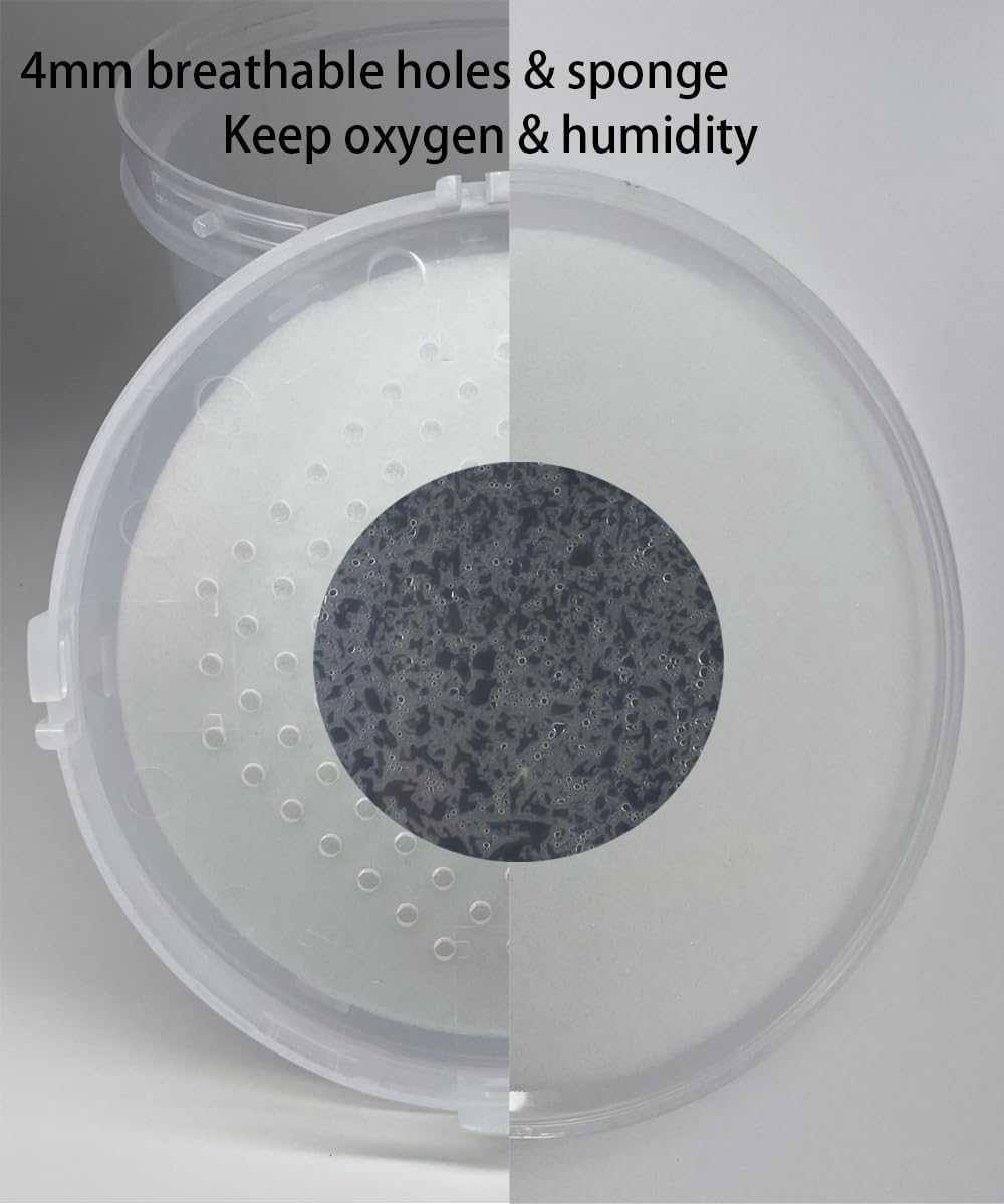 Keep Oxygen&Humidity: Side air intake+4mm breathable holes and sponge, this container provides consistent oxygen while maintaining stable humidity levels, effectively keeping harmful bugs out.