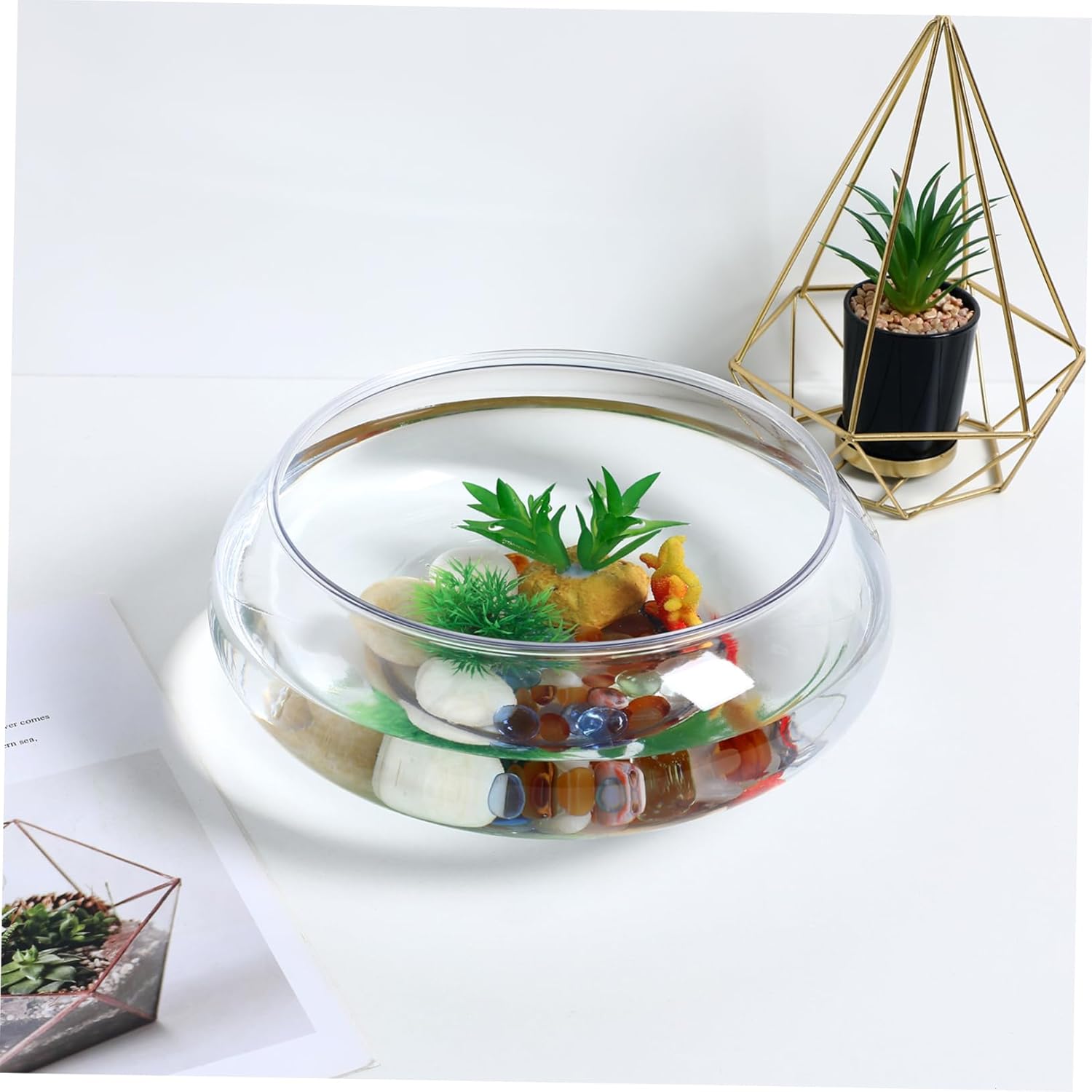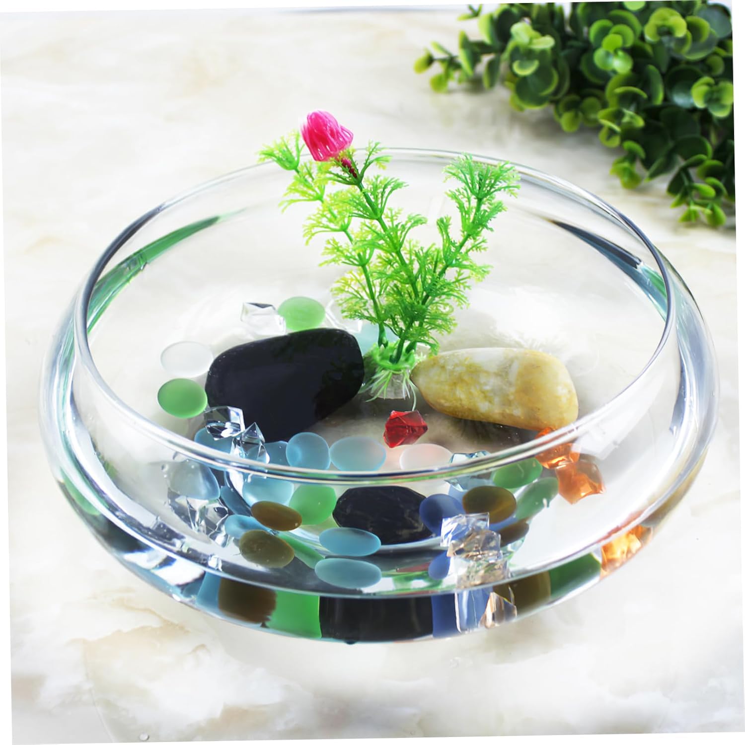 — creative design, this pot is a great partner to place your favorite plant. uniquely designed to make sure your creation catches the eye. these glass fish bowls are easy to rinse with water and dry with clean cloth to prevent scratches