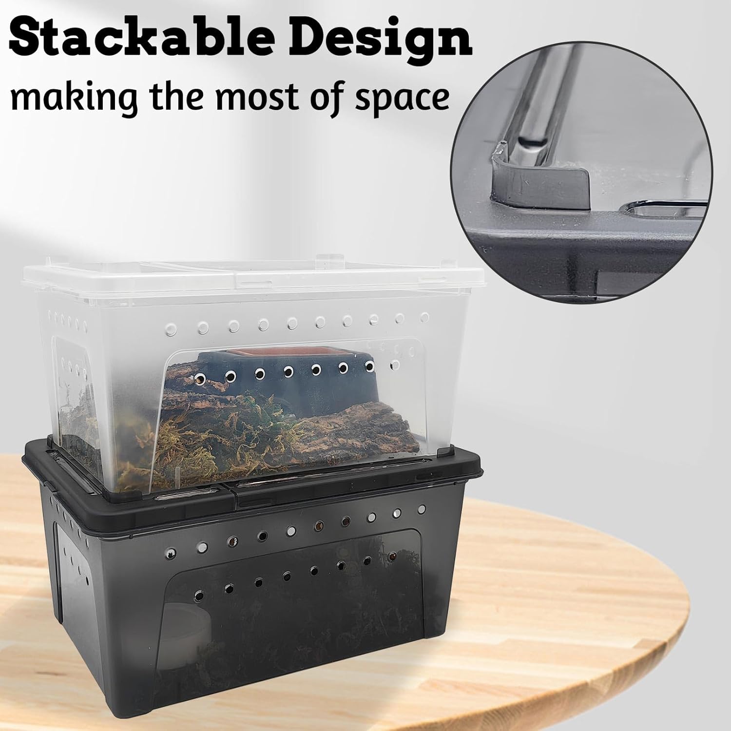 【Sufficient Quantities】You will receive 4 reptile feeding boxes, including 2 large and 2 medium. This combination can well meet your daily feeding needs, and the feeding boxes can be stacked to help you make full use of the storage space and also make the space more neat and organized