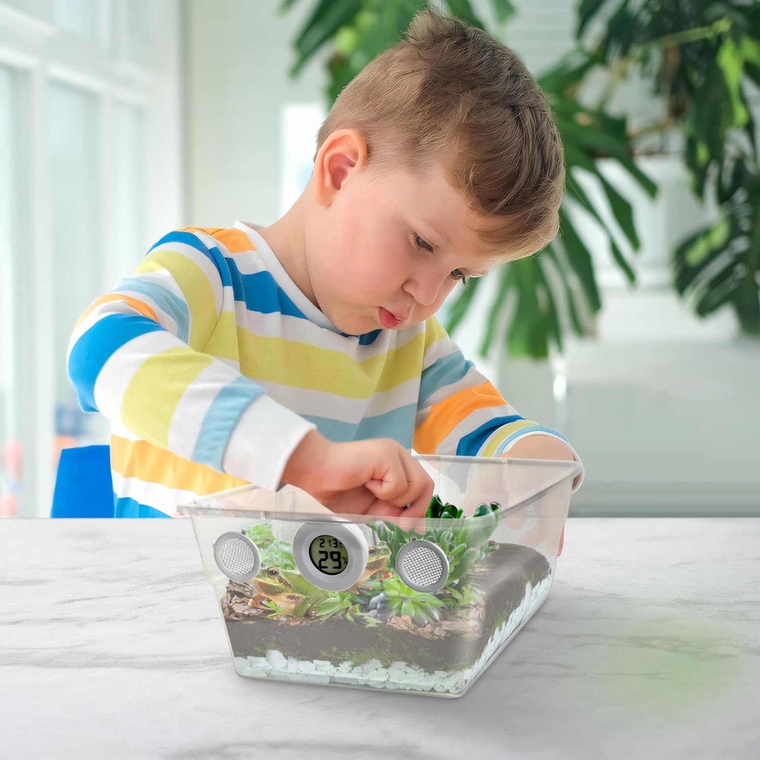 Vented Vivarium Enclosure 6 Quart Terrarium with Temperature & Humidity Hygrometer Sensor for Reptiles, Isopods, Small Bugs (White Vents)