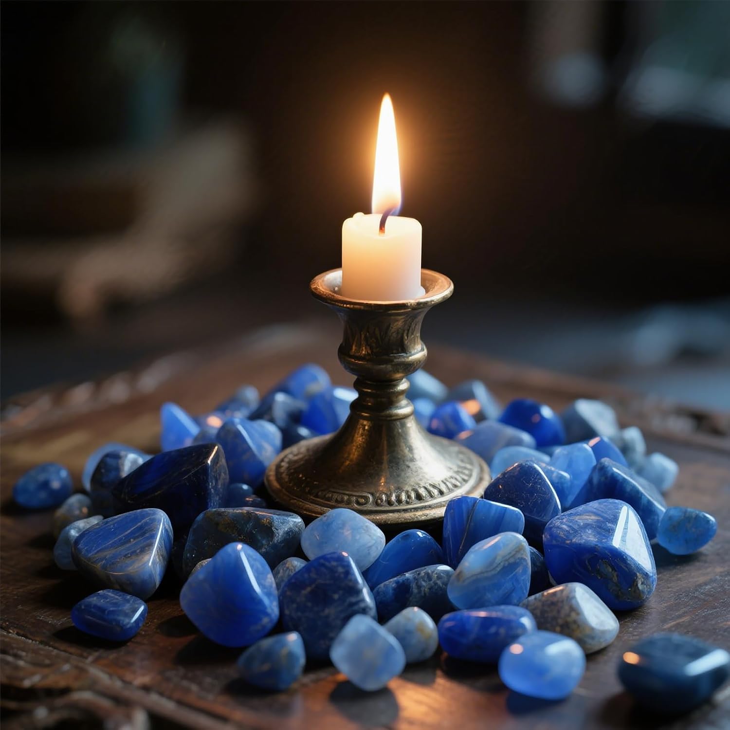 Vnezakl Natural Blue Polished Stone Tumbled Pebbles 0.4-0.7 Inch Decorative Rocks Gravel for Aquarium Decor Vase Filler Plant Potting Crafts Home Decor (1 lb/Bag)